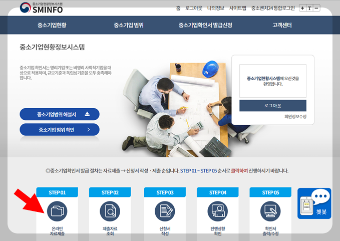 자료제출을 위해 중소기업현황정보시스템(https://sminfo.mss.go.kr/cm/sv/CSV001R0.do)에 들어가요.