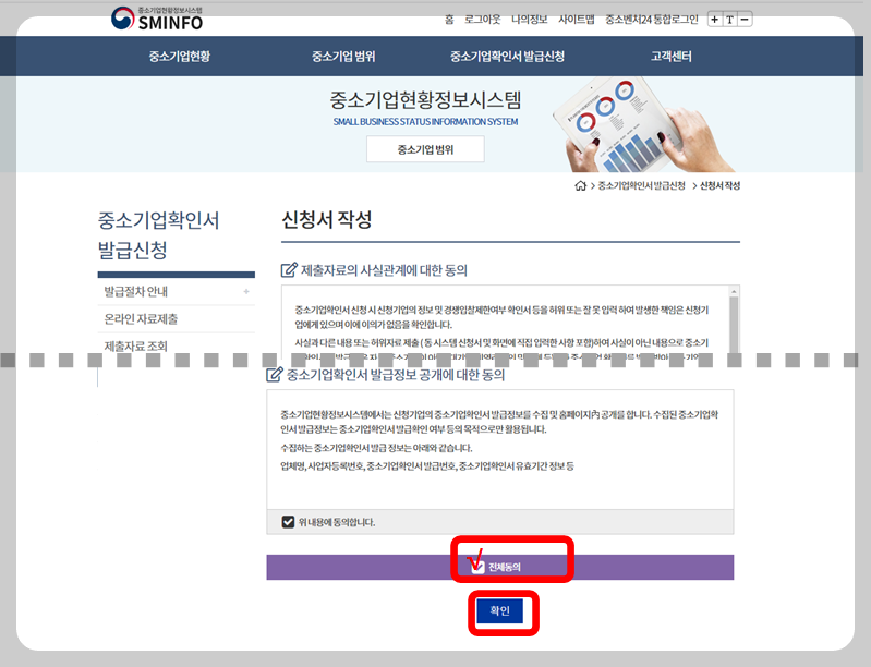 중소기업확인서 갱신, 연장, 신청 발급방법