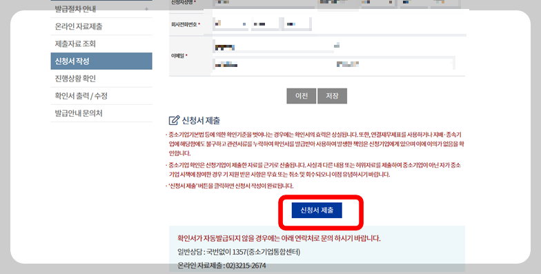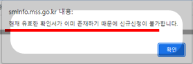 저~~ 위에서 필자가 매출액을 잘못 입력했어요. 매출액을 천 원 단위로 입력해야 되는데 원단위로 잘못 입력했어요. 매출액을 수정하고 싶어요. 처음부터 다시 신청해 봤으나 현재 유효한 환인서가 이미 존재하기 때문에 신규 신청이 불가하다고 나와요.