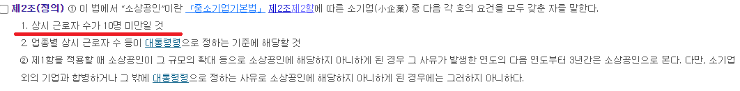소상공인기본법 제2조를 보면 상시 근로자 수가 10명 미만이에요. 필자는 소기업(소상공인)이 확실해요.