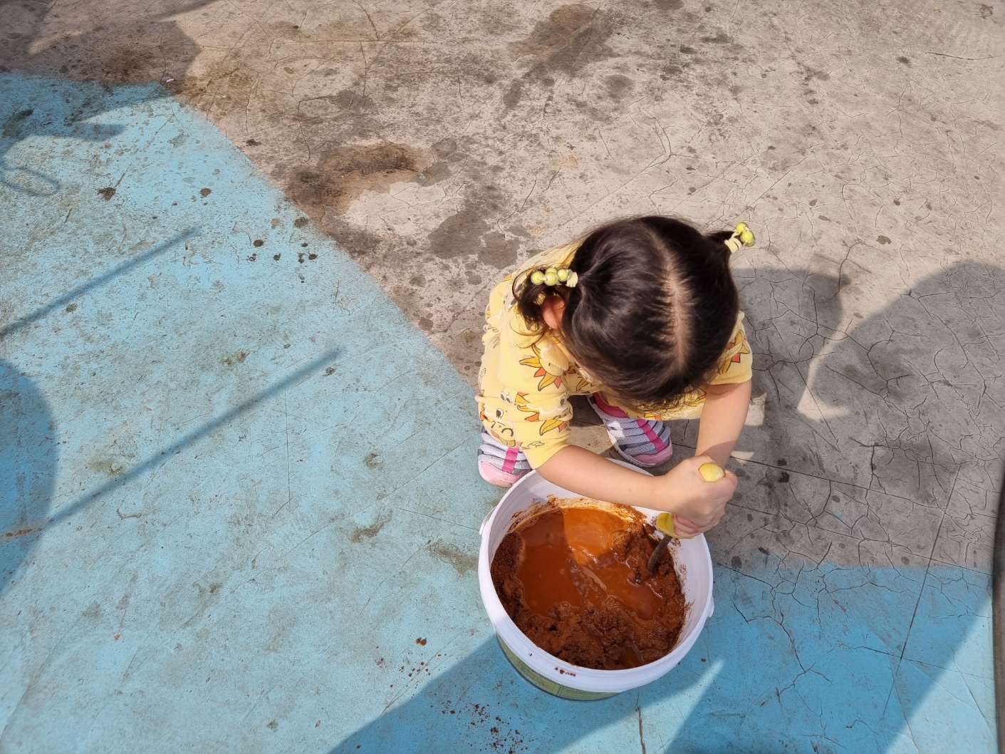 적당히 덜어서 물과 함께 황토 반죽을 했어요. 이 과정을 아이들이 좋아해요. 작은 손으로 주물주물 반죽하는 모습이 귀여워요. 캠핑 가서 흙장난하기 좋아요. 하지만 손에 황토물이 들어요. ㅠㅠ