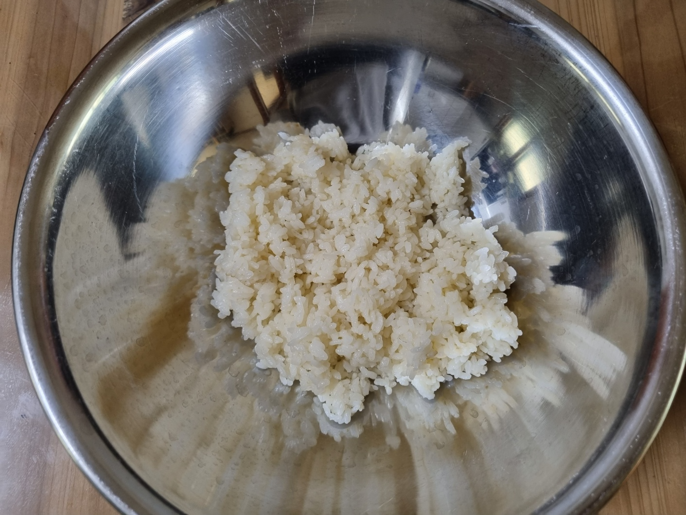 초밥의 맛은 초밥 양념이 결정을 한다고 해도 과언이 아닐 만큼 초밥 양념이 중요한 것 같아요. 일식 쉐프가 아닌 이상 밥은 대충 지어도 괜찮아요. 전기밥솥에 있는 찬밥으로 해도 괜찮아요. 밥은 따로 식히지 않았어요. 귀찮아서... 어느 정도 온기가 남아 있을 때 밥을 양념했어요.
