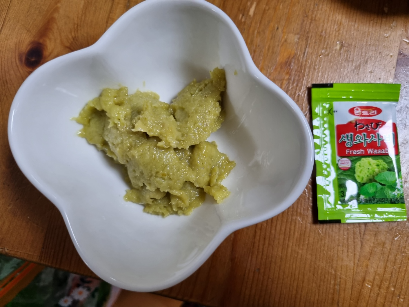 고추냉이. 초밥의 하이라이트에요. 하지만 필자는 초밥에 고추냉이를 넣을 수 없어요. 아이들도 먹는 음식이라 초밥 안에 굳이 고추냉이를 넣지 않았어요. 고추냉이는 개인이 알아서 올려서 먹기로 해요. 마트에서 파는 연와사비 이런 것들은 별로 맛이 없어요. 그래서 아주 톡 쏘는 생와사비를 샀어요. 식자재 마트에서요. 아래 좌표 남겼어요.