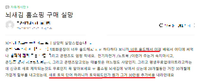 단말기 폭리, 새로운 컨텐츠 추가비용, 내용대비 가격이 저렴하지 않음, 기기 고장에 따른 추가비용 등등 후기가 많아요. 위의 후기들은 필자가 찾아본 결과예요. 필자가 직접 경험해 보지 않았어요. 출처는 글의 하단에 있어요. 어쩌면 후기들이 거짓일 수도 있겠으나 필자는 후기를 믿어요.