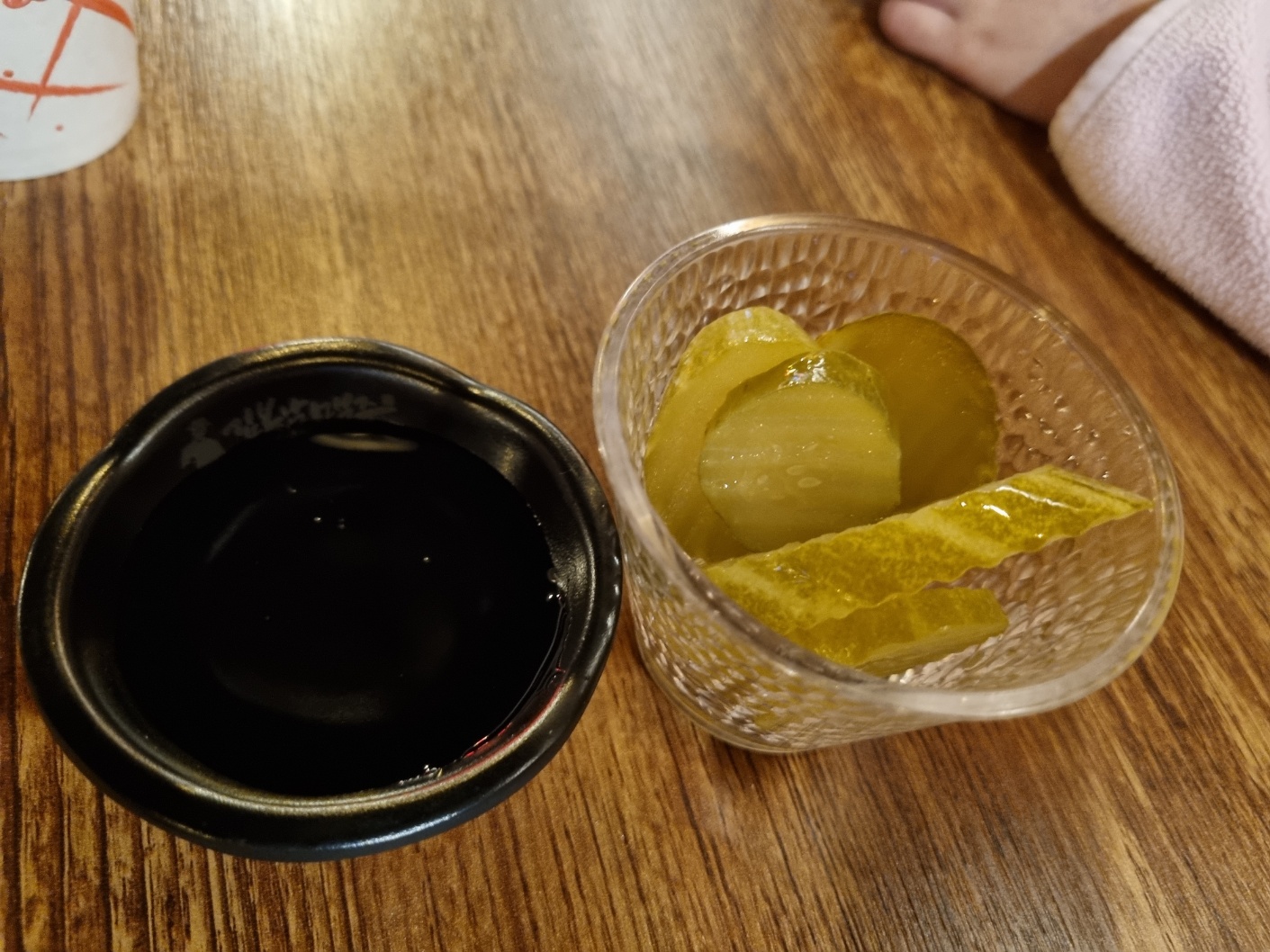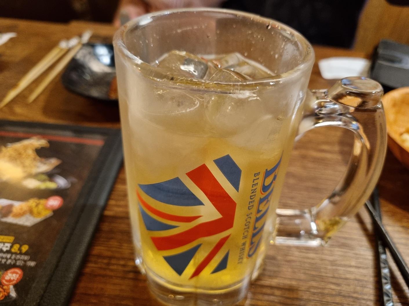 피치 하이볼은 레몬을 하나씩 넣어줘요. 하지만 필자는 레몬이 별로라서 시아버지의 잔에 살포시 양보해요. 그래서 위의 사진에서 하이볼 안에 레몬이 2개가 있어요.