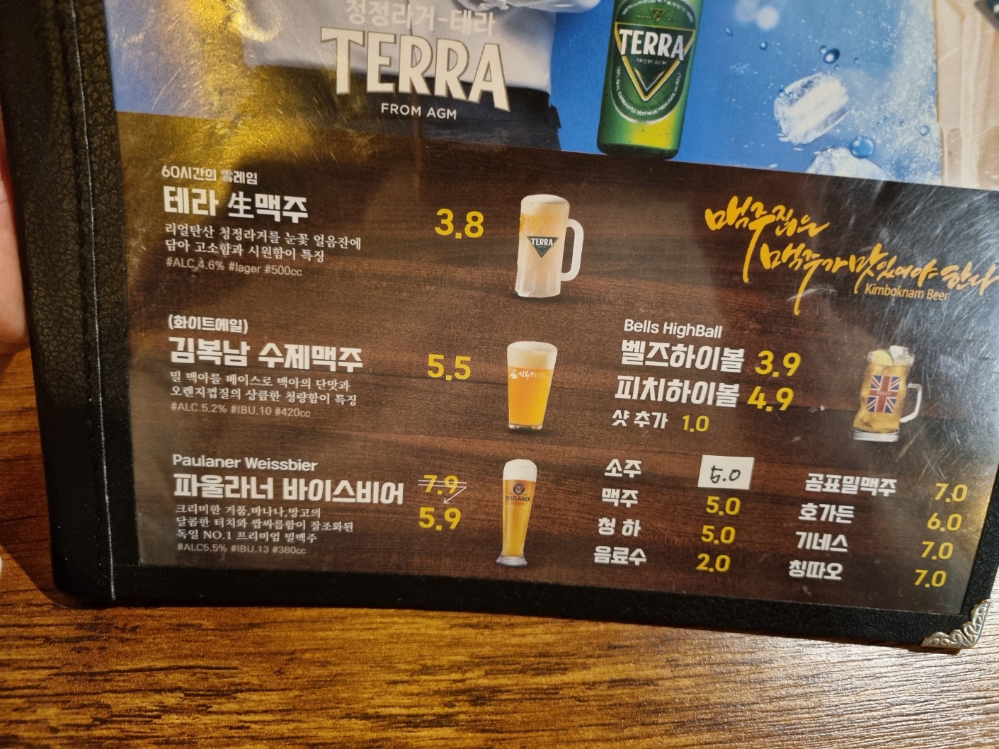 김복남 수제맥주에는 향이 있어요. 오렌지 향이에요. 확실히 청량감은 부족해요. 맥주의 꽃인 청량감이 부족한데 김복남 수제맥주는 맛있어요. 그리고 부드러워요. 탄산이 빠져서 밍밍한 느끼이 아니라 부드럽게 목 넘김도 좋고 단맛이 느껴지는데 꿀맛이에요. 김복남 수제맥주는 에일맥주예요. 에일맥주는 상온 발효하여 향은 짙지만 청량감은 부족해요. 밀과 맥아를 베이스로 맥아의 단맛과 오렌지껍질의 상큼함이 틀별함이라고 해요. 하지만 필자는 밀과 맥아를 몰라요. 김복남 수제맥주에서 느껴지는 단맛과 오렌지껍질의 향이 그냥 좋아요. 맛있어요. 편의점에서 판매하는 에일맥주는 대부분 향이 역하고 오히려 맥주 본연의 맛을 방해하고 있다고 생각해서 에일맥주보다 라거를 선호했어요. 그런데 김복남 수제맥주는 확실히 달라요. 1잔에 420cc래요. 필자는 2잔까지 맛있게 먹을 수 있어요. 수제맥주 2잔 먹고 하이볼로 넘어가요.