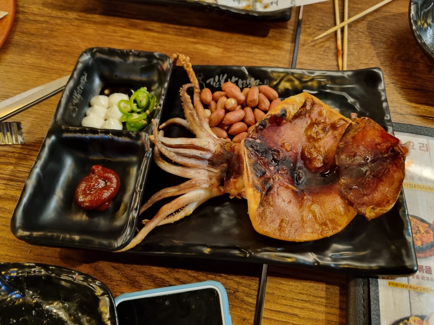 마지막으로 나온 반건조 오징어. 정신 차리고 먹기 전에 사진 찍었어요. 반건조 오징어는 언제 먹어도 맛있어요. 부모님도 좋아하고 아이들도 좋아해요. 물론 필자도 매우 좋아하는 메뉴예요. 필자가 맥주와 함께 반건조 오징어를 먹을 때면 항상 아이들이 다 뺏어 먹고 해요. 나쁜 것들!!!