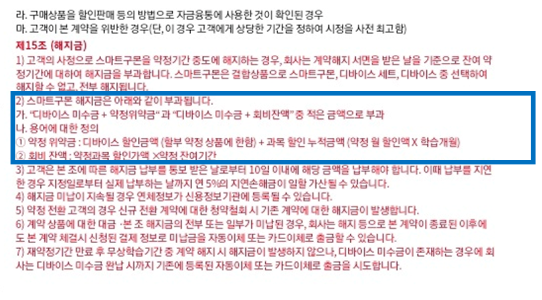 스마트 구몬 해지 위약금은