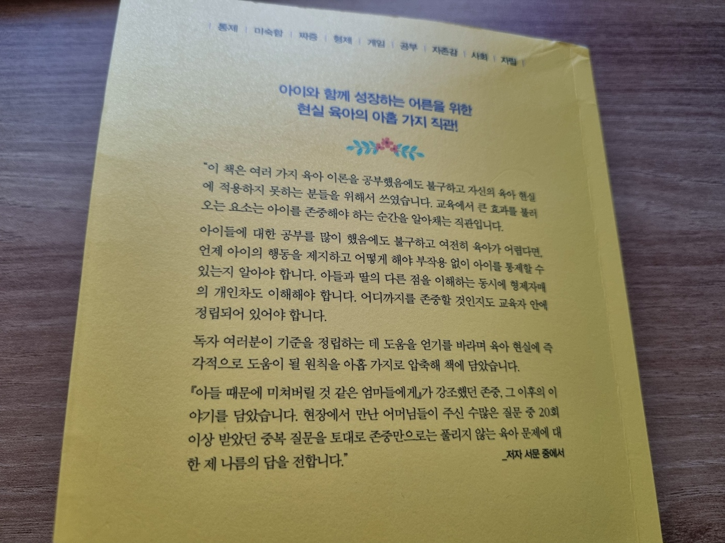 하지만 최민준 소장님의 책은 달랐어요. 【나는 오늘도 너에게 화를 냈다】의 뒷편에 '육아 이론을 공부했음에도 불구하고 자신의 육아 현실에 적용하지 못하는 분들을 위해서 쓰였습니다'라고 적혀 있어요. 꼭 필자를 말하는 것 같았어요.