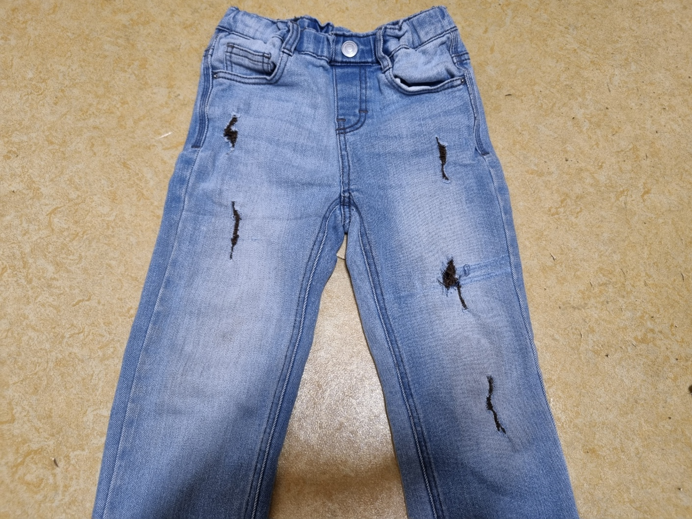 필자가 예쁘다고 생각하는 바지가 있어요. 바로 위의 사진과 같은 청바지예요. 총알 청바지, 스크래치 데임, 구제 바지 등등 불리는 이름은 다양해요. 이 스크래치 데님은 아이가 입었을 때 너무 예뻐요. 완전히 찢어지지도 않고 속살이 비치지도 않으며 약간의 멋스러움이 느껴져요. 필자는 조만간 이런 스크래치 데님을 만들려고 해요. 기존에 밋밋한 청바지도 스크래치를 만들면 멋스러움이 느껴질 것 같아요. 그래서 이번엔 청바지에 총알 모양, 즉, 스크래치 만들기를 해보려고 해요.