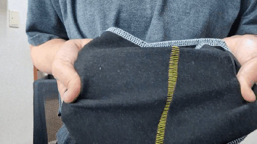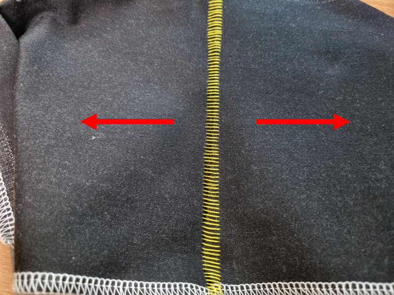 뒤집어서 원단을 양 옆으로 잡아당기면 위와 같은 바느질 패턴이 보여요. 플랫룩 패턴이에요. 이거 은근히 재밌어요.