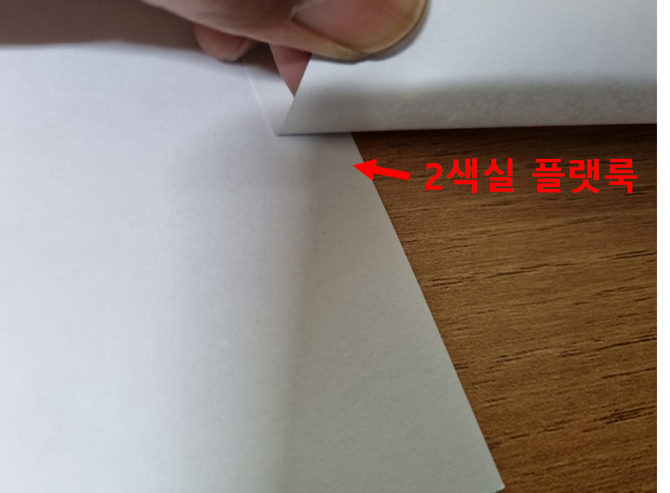 2색실 플랫룩은 원단이 튀어나오는 부분 없이 정확히 딱 겹쳐져요. 3색실 플랫룩은 원단이 겹쳐서 튀어나오는 부분이 생겨요. 위의 사진은 이해를 돕기 위해 종이로 2색실, 3색실 플랫룩을 표현했어요. 필자는 3색실 플랫룩을 사용할 일은 거의 없을 것 같아요. 2색실이 재밌어요. 원단이 펼치면 딱 맞게 펼쳐지는 원단도 신기하고 패턴도 신기해요.