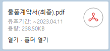 낙찰 통보 이후 주말을 포함하여 일주일 정도 지났어요. 조달플랫폼 업체에서 예약체결 됐다고 계약서 최종본을 전달해 줬어요. 계약서는 나라장터 전자문서 출력물로 조달청의 동의 없이 수정, 변경 및 복사할 수 없대요. 그래서 계약서를 올리지 못해요. 이렇게 계약체결은 끝났어요.