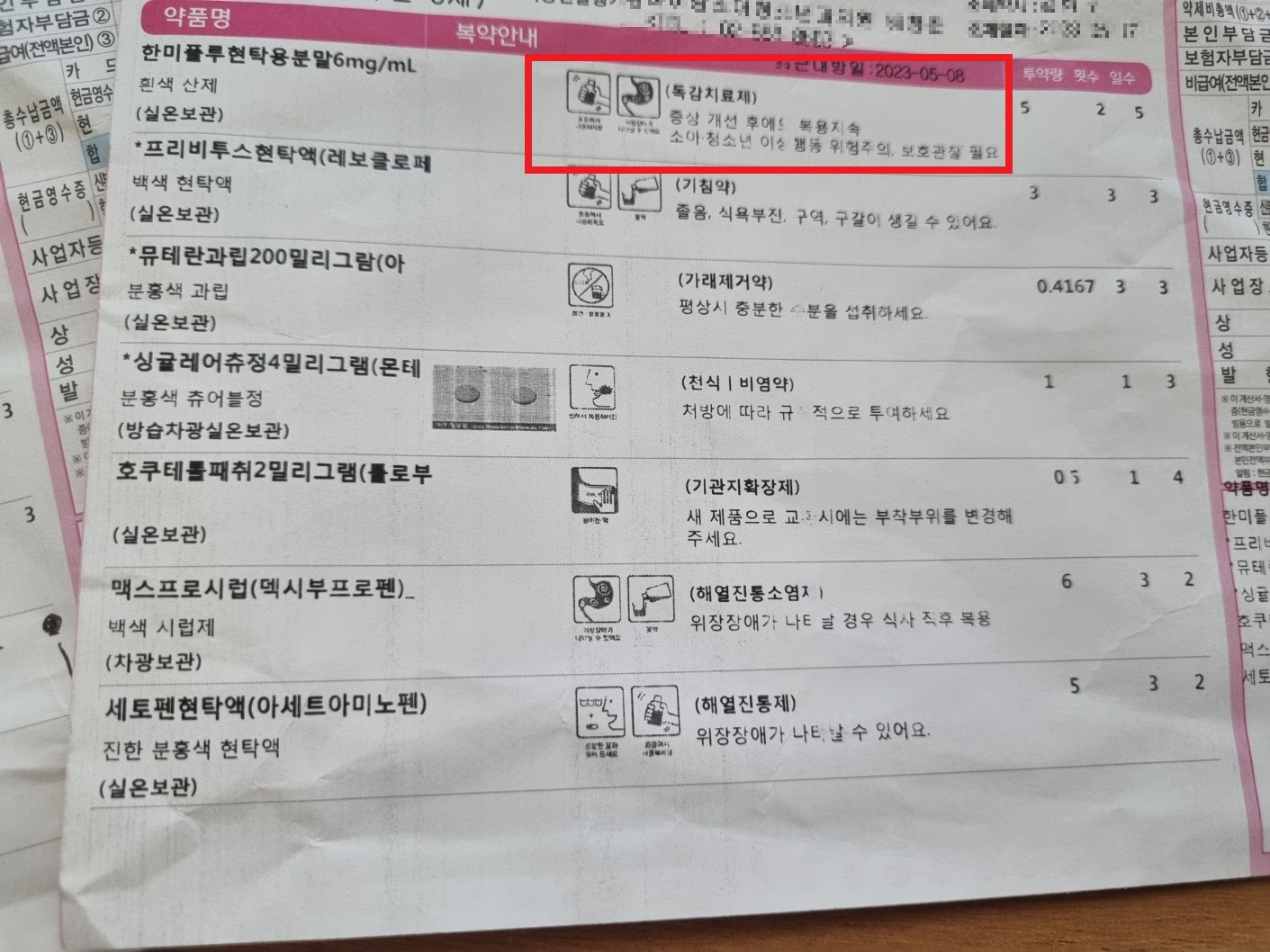 부작용도 무시할 수 없어요. '소아, 청소년 이상행동 주의, 보호관찰 필요'라고 적혀 있어요. 무서워요.