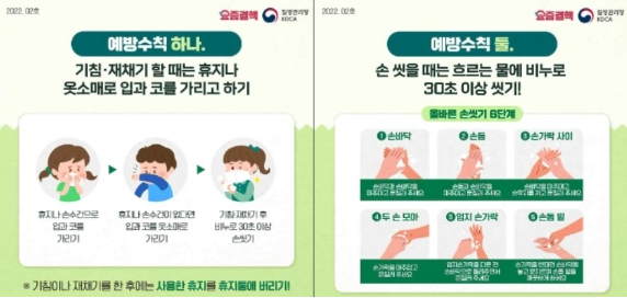 독감을 예방하기 위해서 기침 예절을 지키고 손을 잘 씻으래요.
