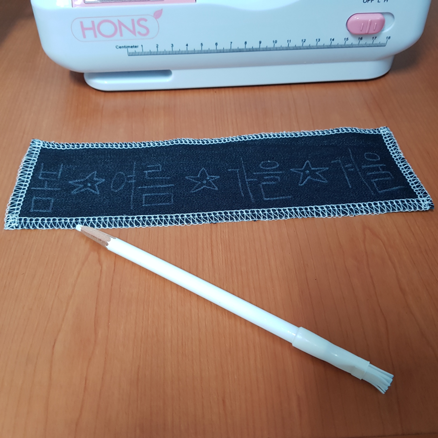 혼스 미싱으로 자수 노루발 사용방법은 어렵지 않다. 생각처럼 디테일하게 잘 되지는 않지만 조금 더 연습하면 잘 될 것 같다. 아무리 연습을 한다고 해도 자수 미싱처럼 예쁘게 할 수는 없겠지만 그래도 자수 넣는 과정이 재밌다.