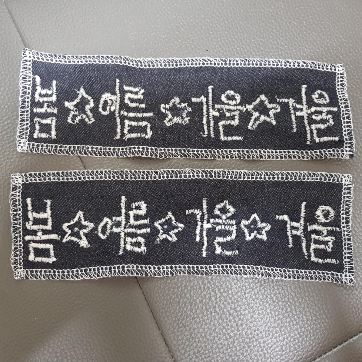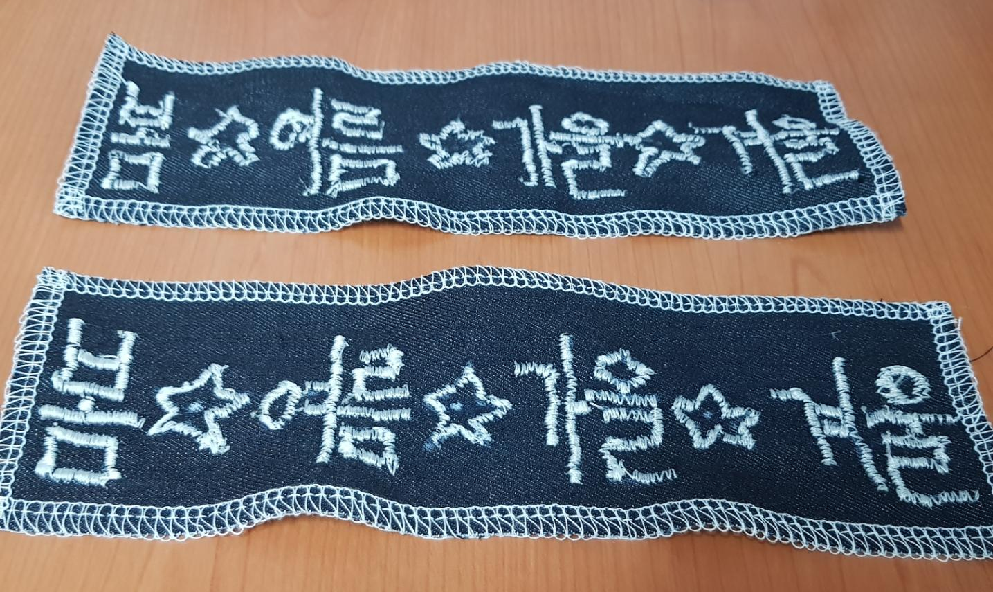 생각보다 자수 넣기가 너무 재밌어서 한번 더 해봤다. 아래 사진과 같이 자수 넣은 원단 두 장을 놓고 보니 괜찮은 거 같다.