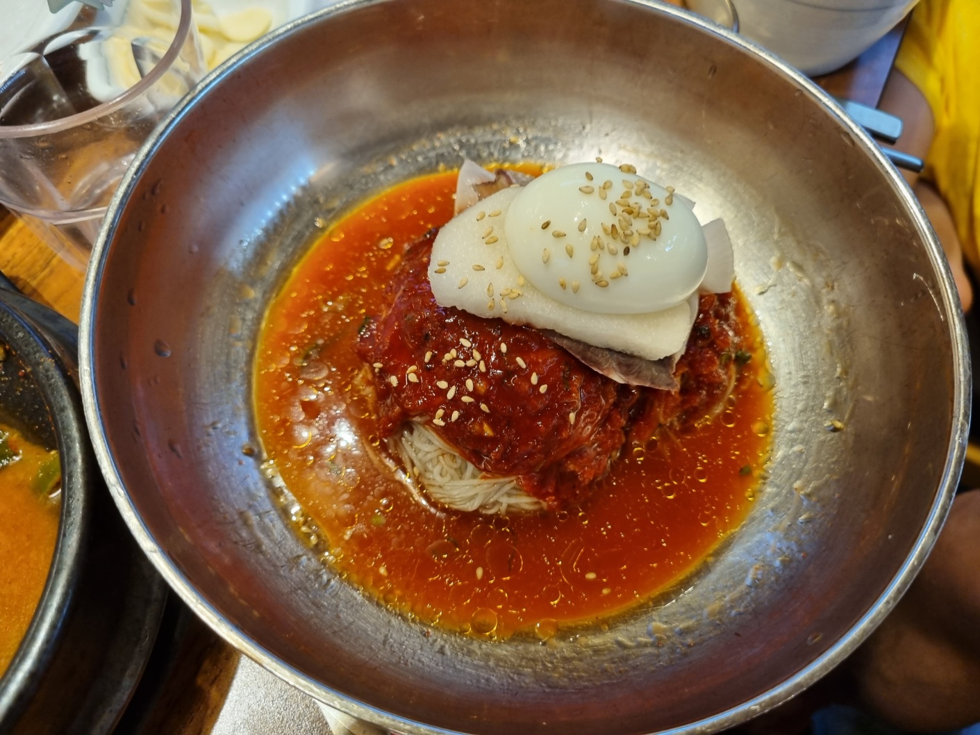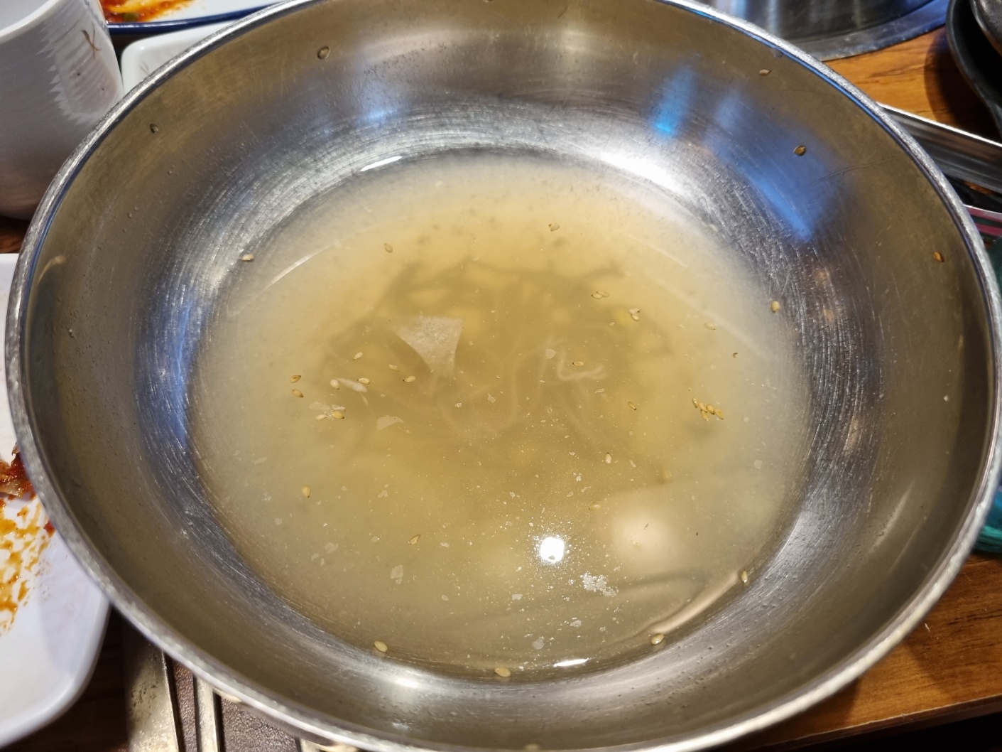 후식으로 비냉도 먹고 물냉도 먹었어요. 물냉은 다 먹고 난 사진이에요. 아쉽게 사진을 못 찍었어요. 냉면이 조미료 냉면이 아니에요. 자극적이지 않아요. 시원하고 깔끔해요. 된장찌개도 먹었는데 역시 사진이 없어요. 된장찌개가 정말 맛있었어요. 역시 맛있는 거 먹을 땐 사진을 찍어야 된다는 생각을 못해요.