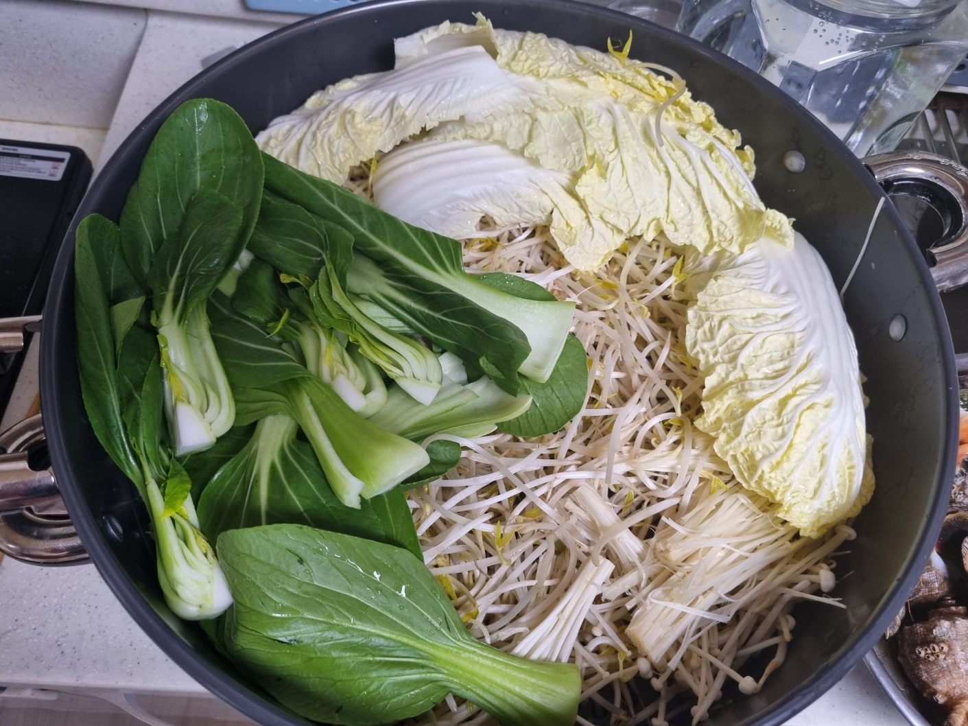 처음에 숙주도 넣고 야채를 넣었어요.