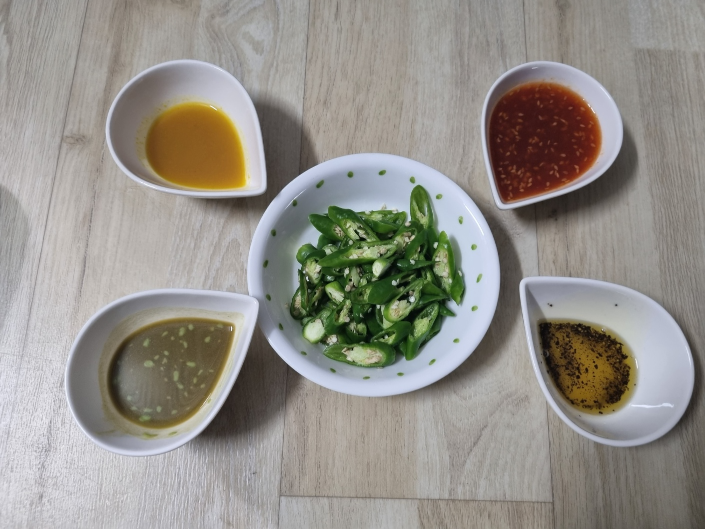 양파절임 소스에 와사비 풀면 맛있는 간장 소스가 돼요. 기름 소금장도 맛있고, 특히 샤브수끼 소스가 맛있어요.