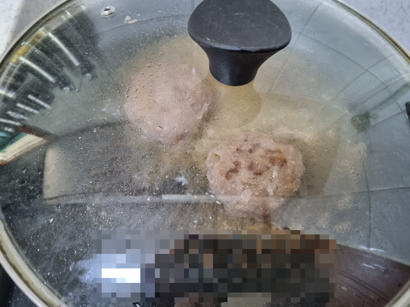 그리고 뚜껑을 덮고 기다려요. 고기의 안까지 다 익도록. 거의 물에 쪄지는 수준이에요.