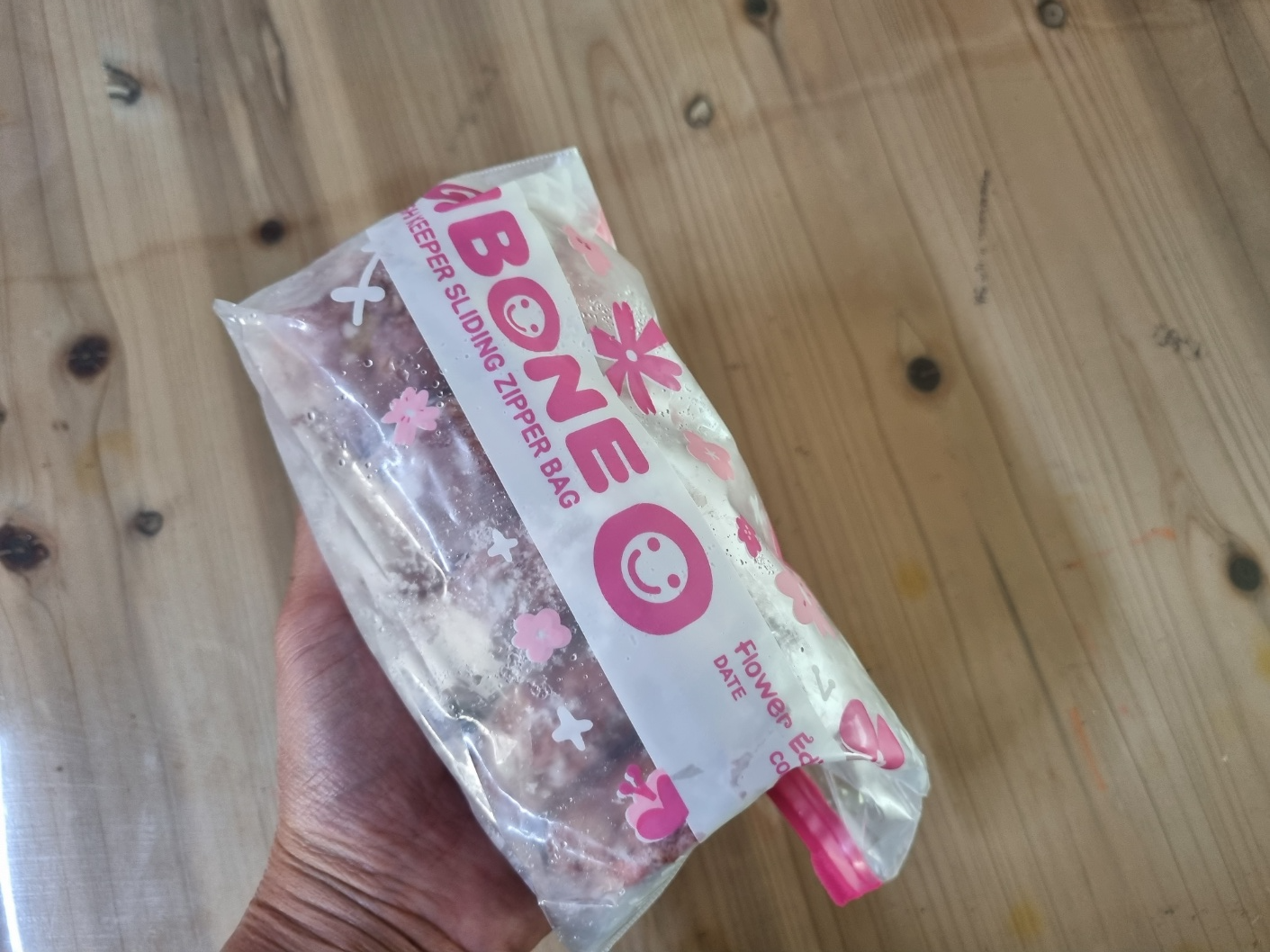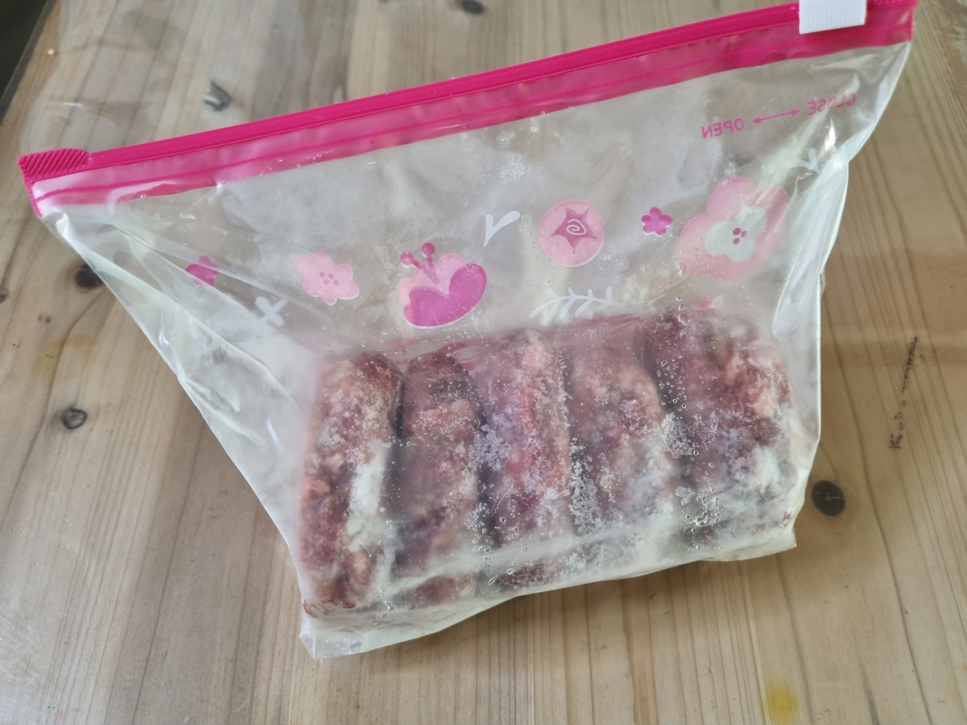 지퍼팩에 차곡차곡 넣어요. 다시 냉동실에 넣어요. 그리고 먹고 싶을 때마다 하나씩 꺼내서 먹으면 편리하고 좋아요. 냉동실에서 보관했다 먹어도 고기의 퀄리티가 크게 떨어지지 않아요. 시중에 판매하는 제품보다 훨씬 더 부드럽고 맛있어요.