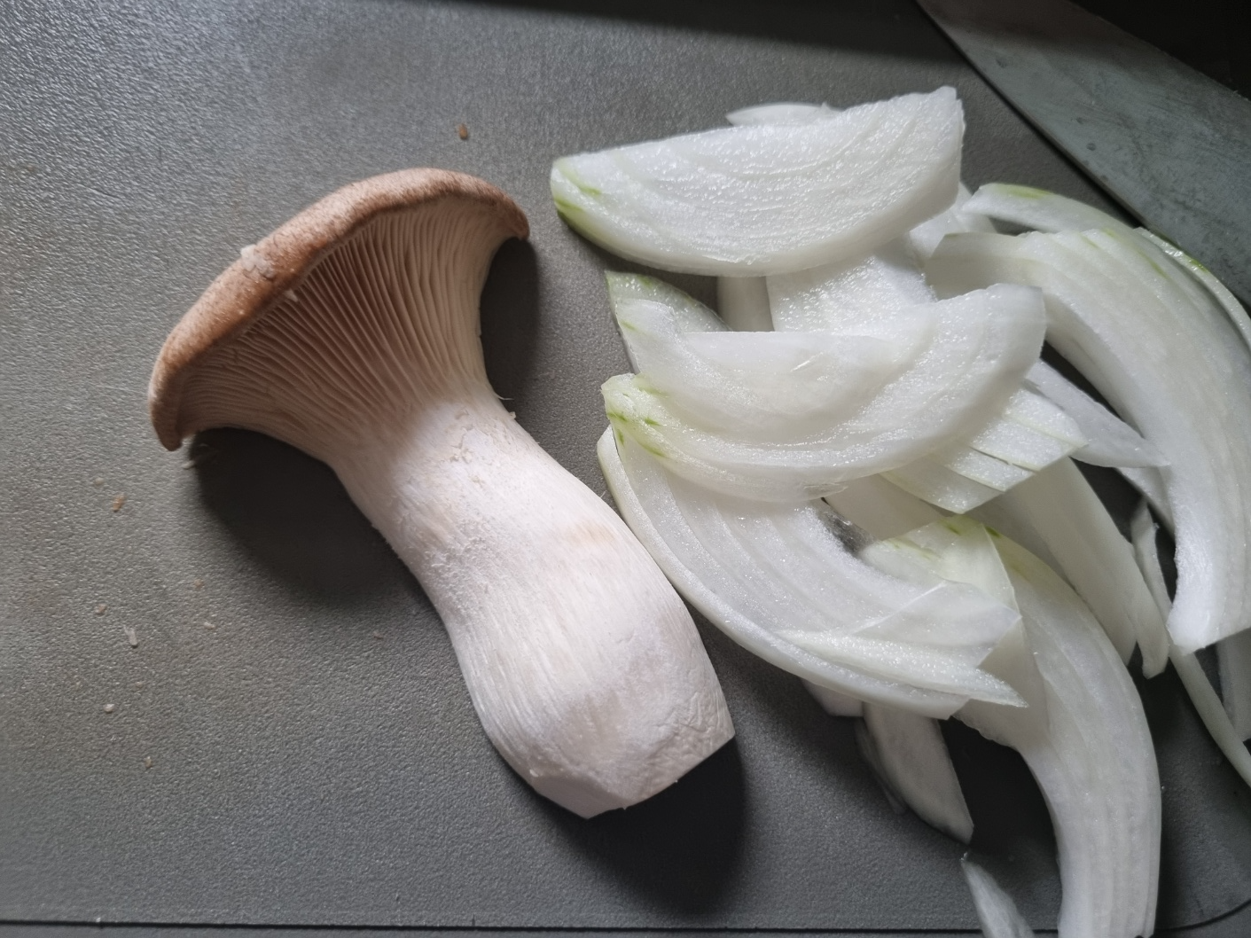 소스 만들 야채를 준비해요. 양송이 없어서 새송이로 대신했어요.