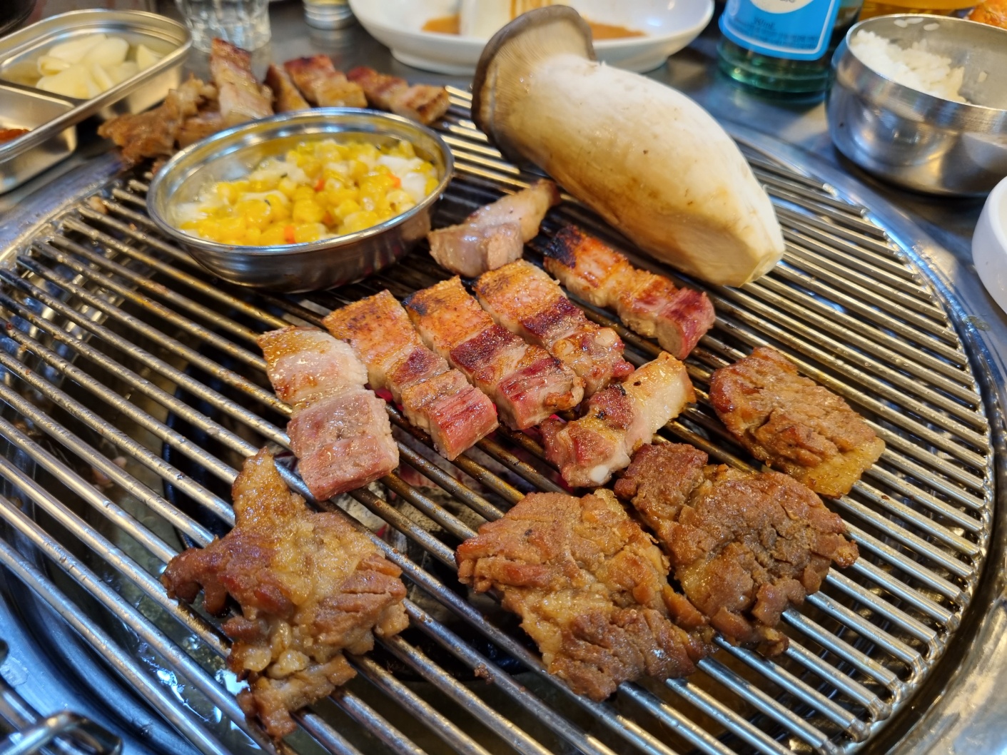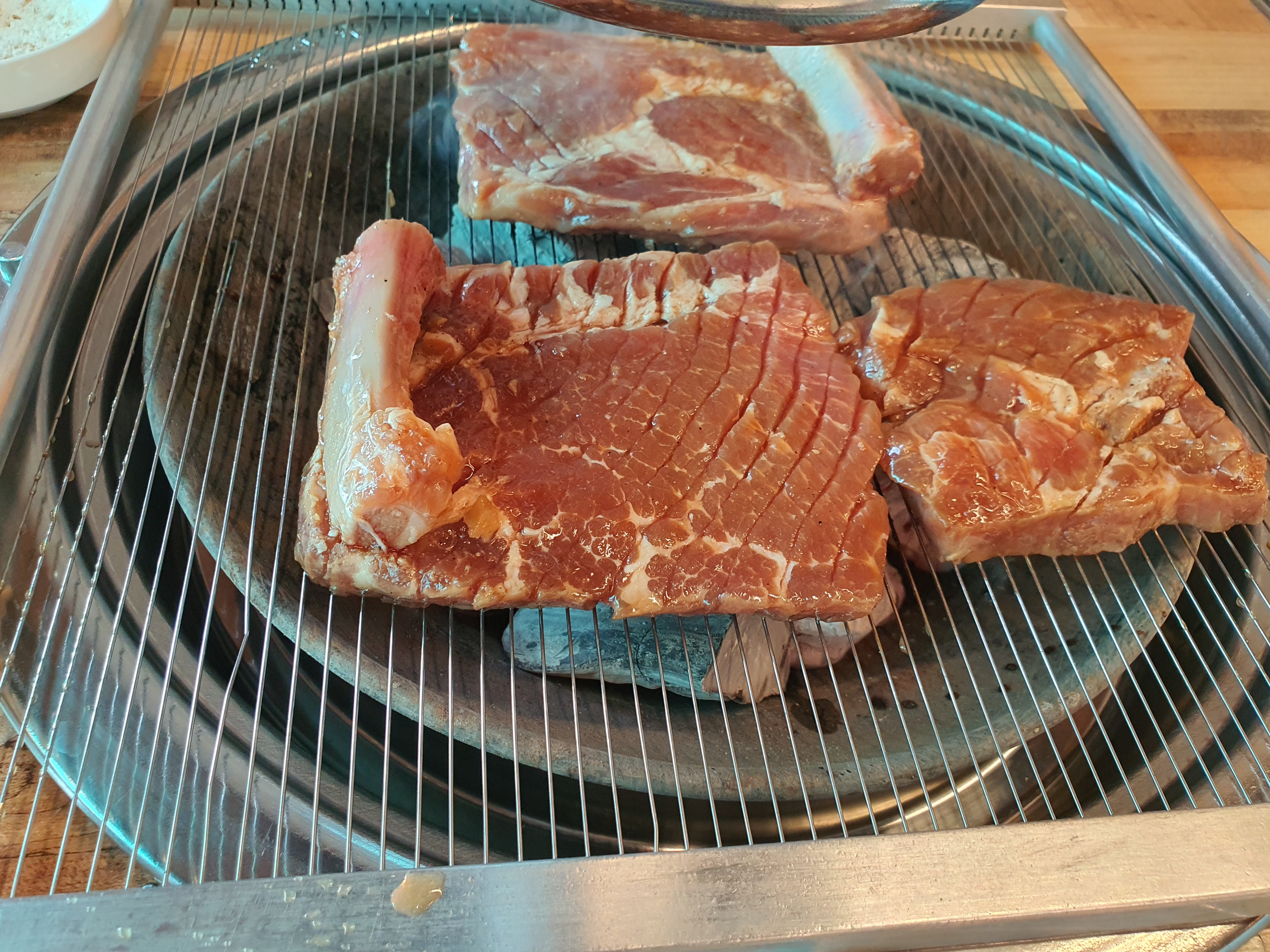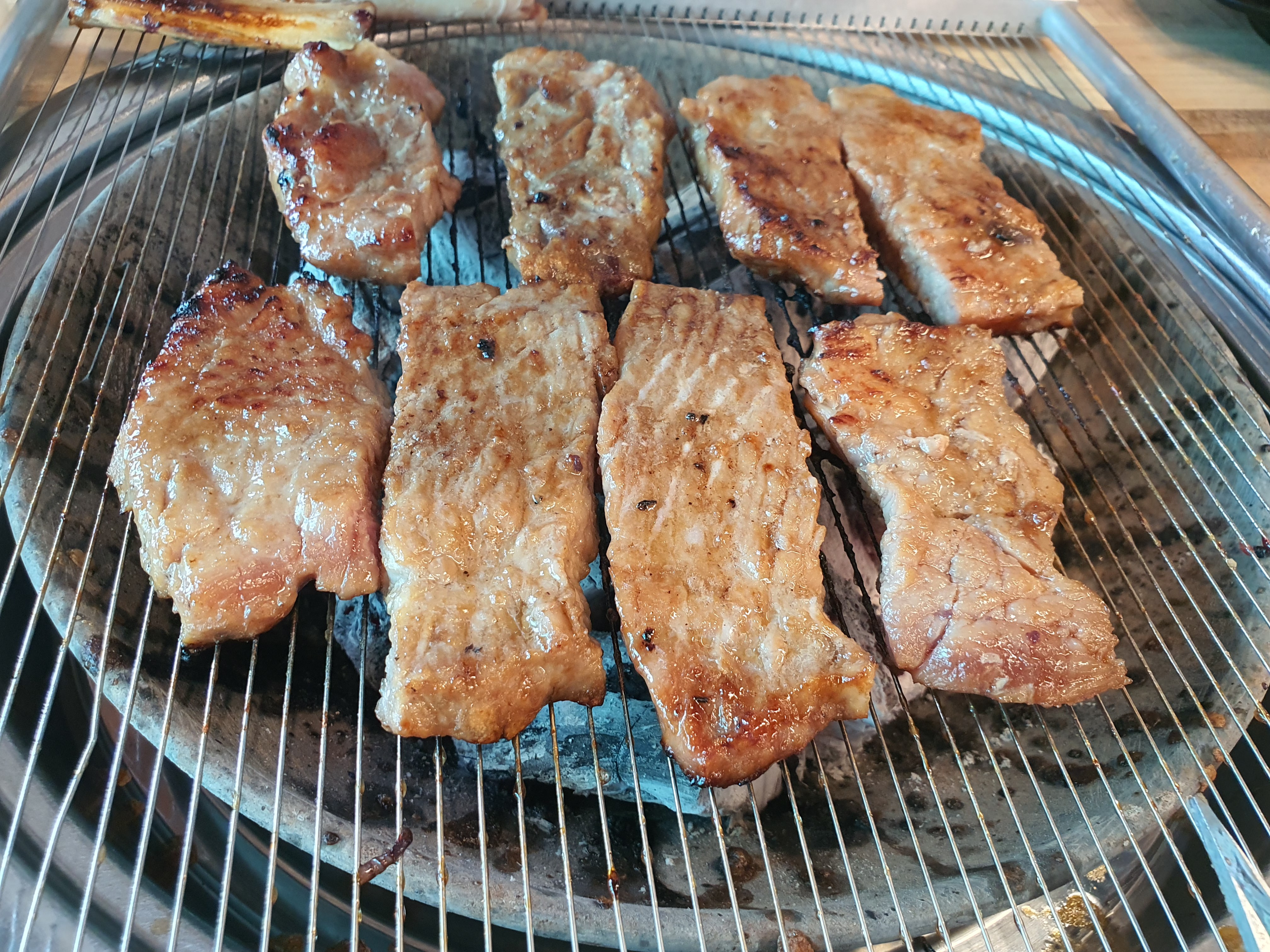 석쇠가 고기의 맛에 어떤 영향을 미치는지는 잘 모르겠으나 필자는 얇은줄 석쇠가 좋아요. 기분 탓일 수도 있어요. 고기가 신선하고 좋으면 어떻게 요리를 해도 맛있는 것 같아요. 하지만 야자숯, 조개탄 같은 것들은 완전 별로예요. 숯향이 달라서 필자는 좋아하지 않아요.