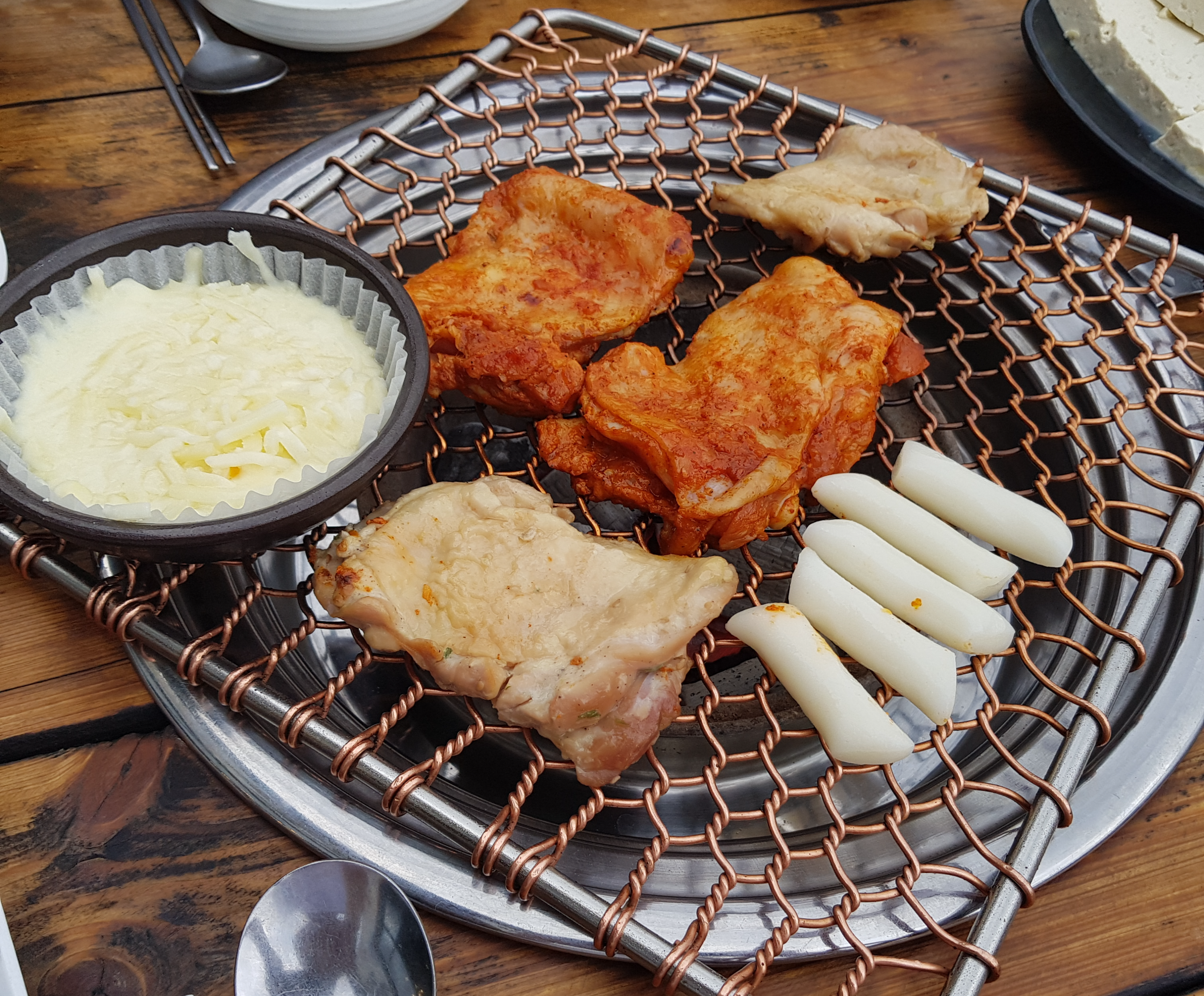 위의 사진은 구리 석쇠에요. 철로 만든 석쇠는 녹슬고 부식되는 단점이 있기 때문에 구리를 이용해 만든 석쇠예요. 하지만 구리는 내구성이 약해서 오래 사용하지 못해요. 그러나 붉은빛을 보이는 구리 석쇠는 열전도가 빠르며 고기를 더욱 맛있게 보이게 하는 시각적 효과도 있대요. 고기맛도 일품이에요. 숯불에 구운 고기는 맛이 없을 수가 없어요. 맛이 없는 게 더 이상할 정도예요.