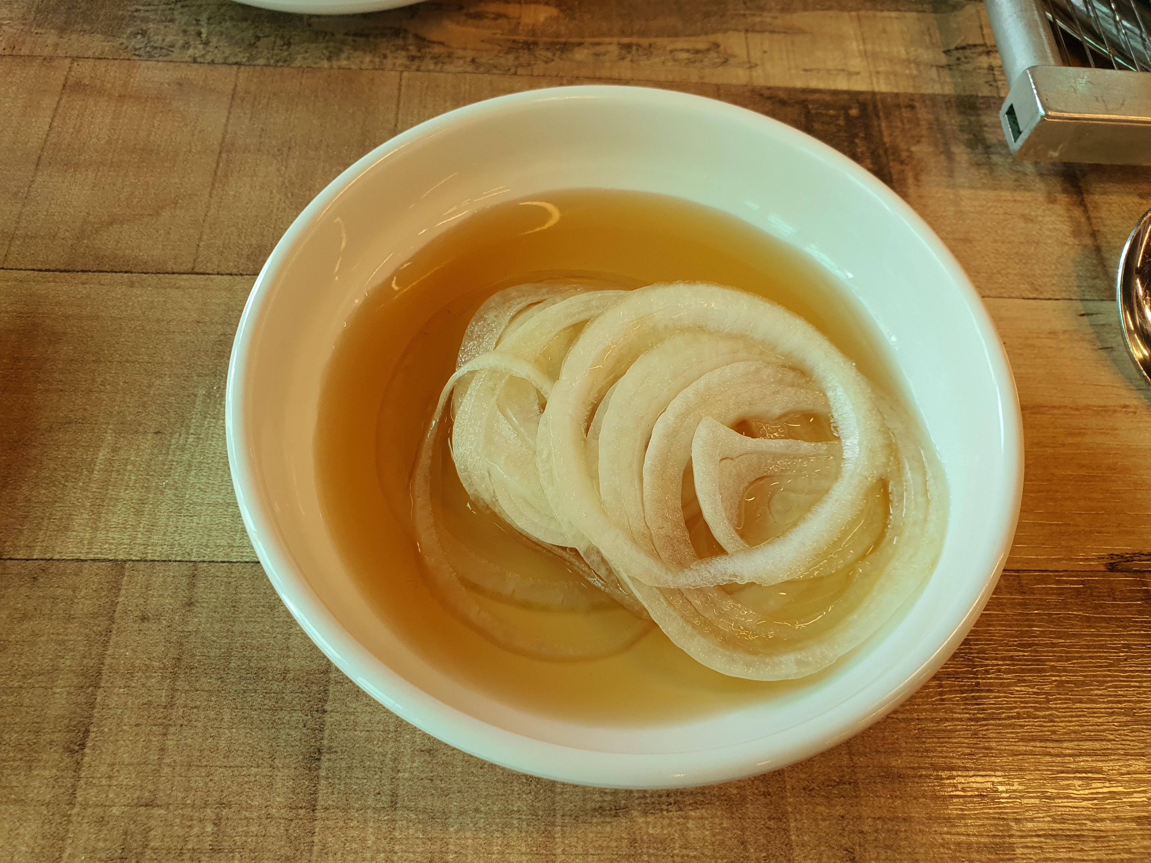 요즘 흔하게 볼 수 없는 얇은줄 석쇠예요. 예전엔 꽤 많이 보였던 거 같은데 무슨 이유인지 얇은 줄 석쇠를 사용하는 식당들이 사라지고 있어요. 필자가 가장 좋아하는 석쇠예요. 특히 숯불 양념 갈비에 가장 잘 어울리는 석쇠 같아요. 양념은 불과 닿는 면적이 많을수록 숯의 향을 흡수하여 더 맛있게 느낀다고 했어요. 그래서 양념 갈비는 얇은줄 석쇠에 구워야 맛있는 것 같아요.