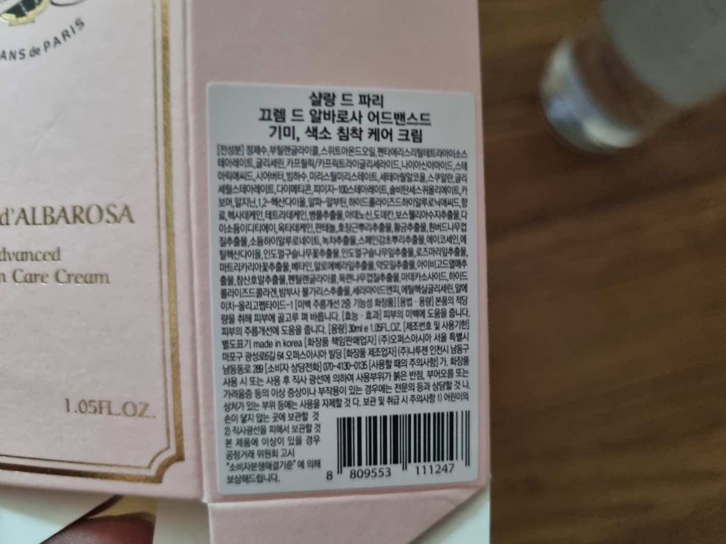 그래서 이 제품의 이름이 뭐냐면 살랑 드 파리 어쩌구 저쩌구. 생소한 단어들이에요. 그냥 쉽고 빠르고 이해하기 쉽게 토너와 크림으로 불러요.