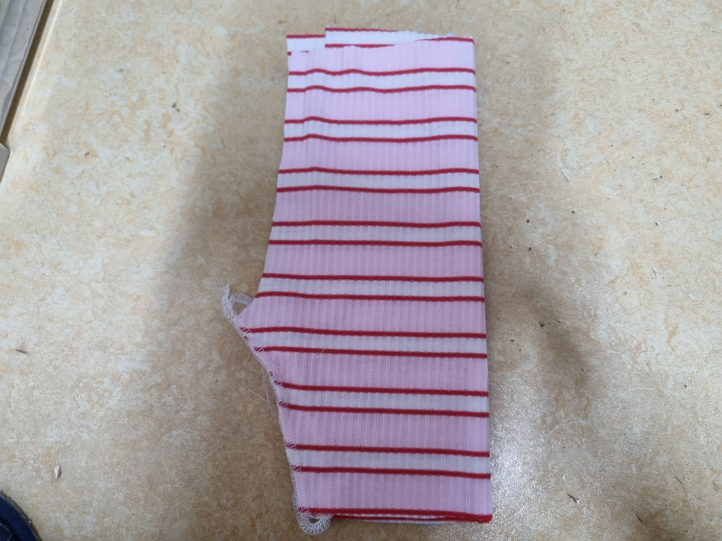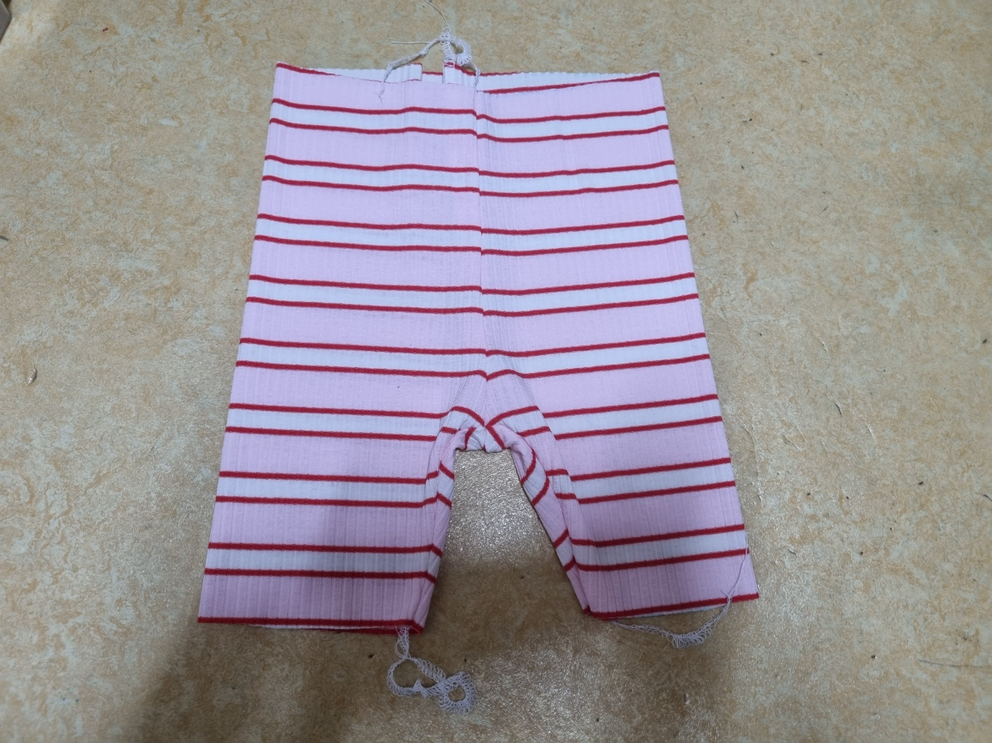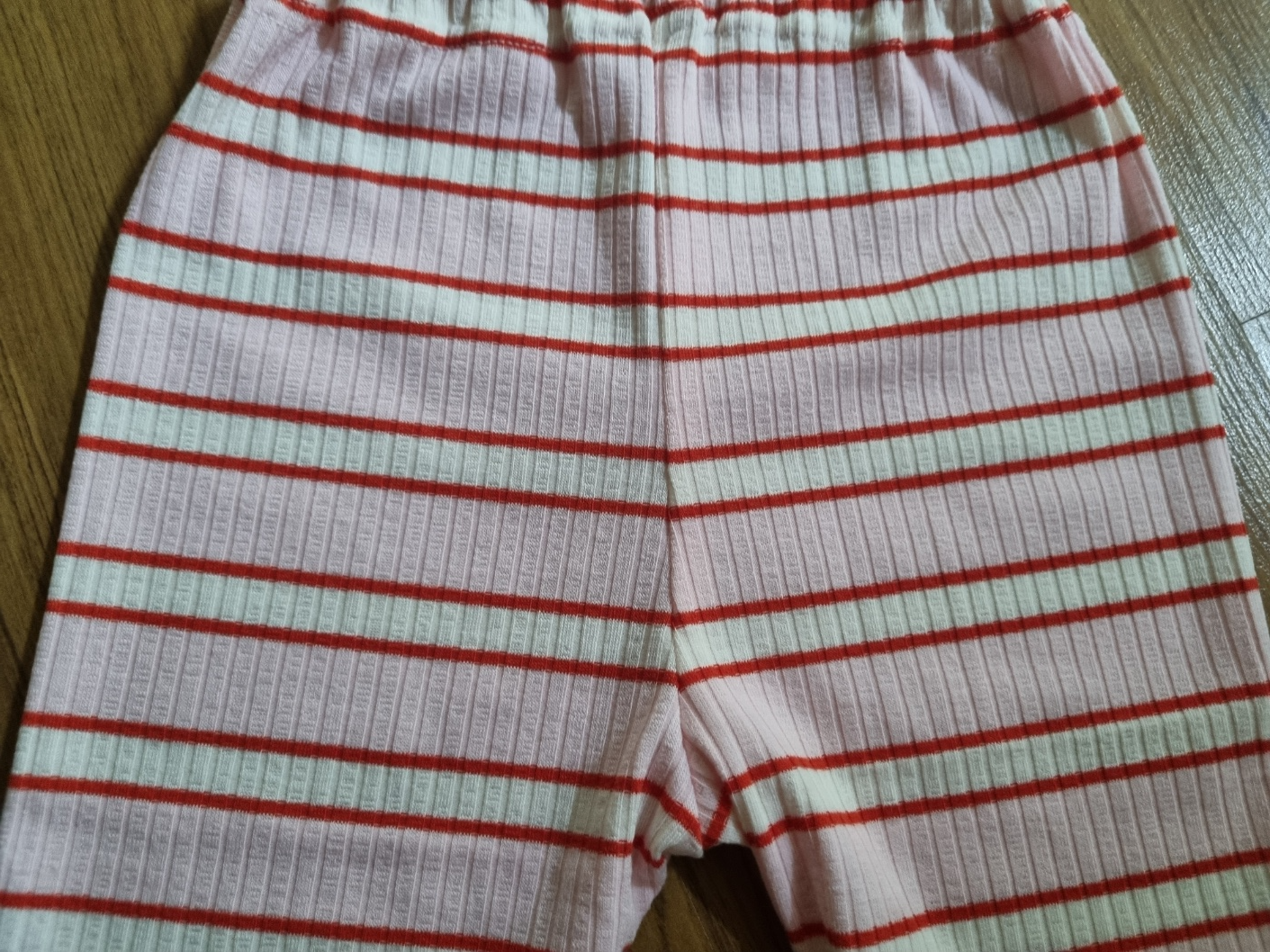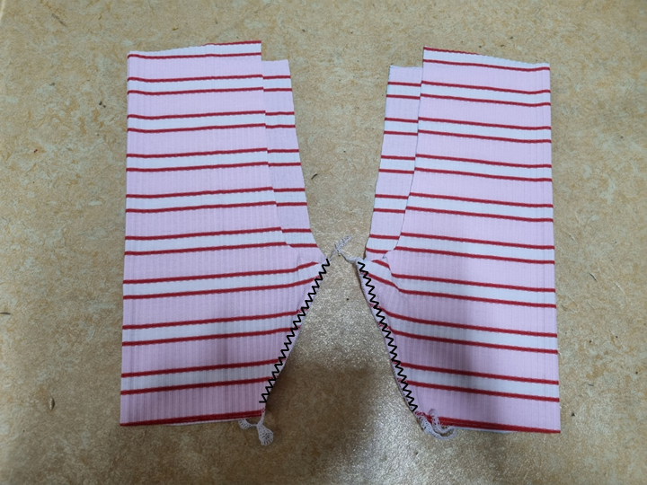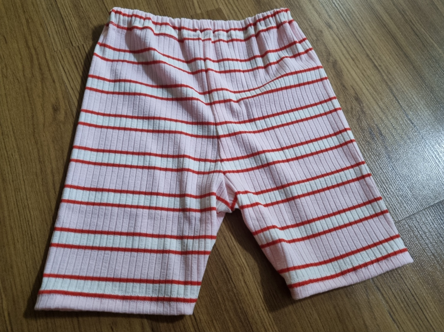 조금 확대해서 사진을 찍었어요. 줄무늬도 잘 맞췄어요. 사질 이런 가로줄은 줄무늬 못 맞추면 정신없어 보여요. 그래서 줄무늬도 맞췄는데 생각보다 너무 완벽해요. 집에서 천천히 만들어도 30분이면 충분히 만들 수 있어요. 사용하는 원단도 아주 적어요. 한마면 2벌 만들 수 있어요. 고무줄도 고작 40cm 정도 사용했어요. 그런데 시중에서 판매하는 아동 레깅스는 왜 이리 비싼지 이해할 수가 없어요.