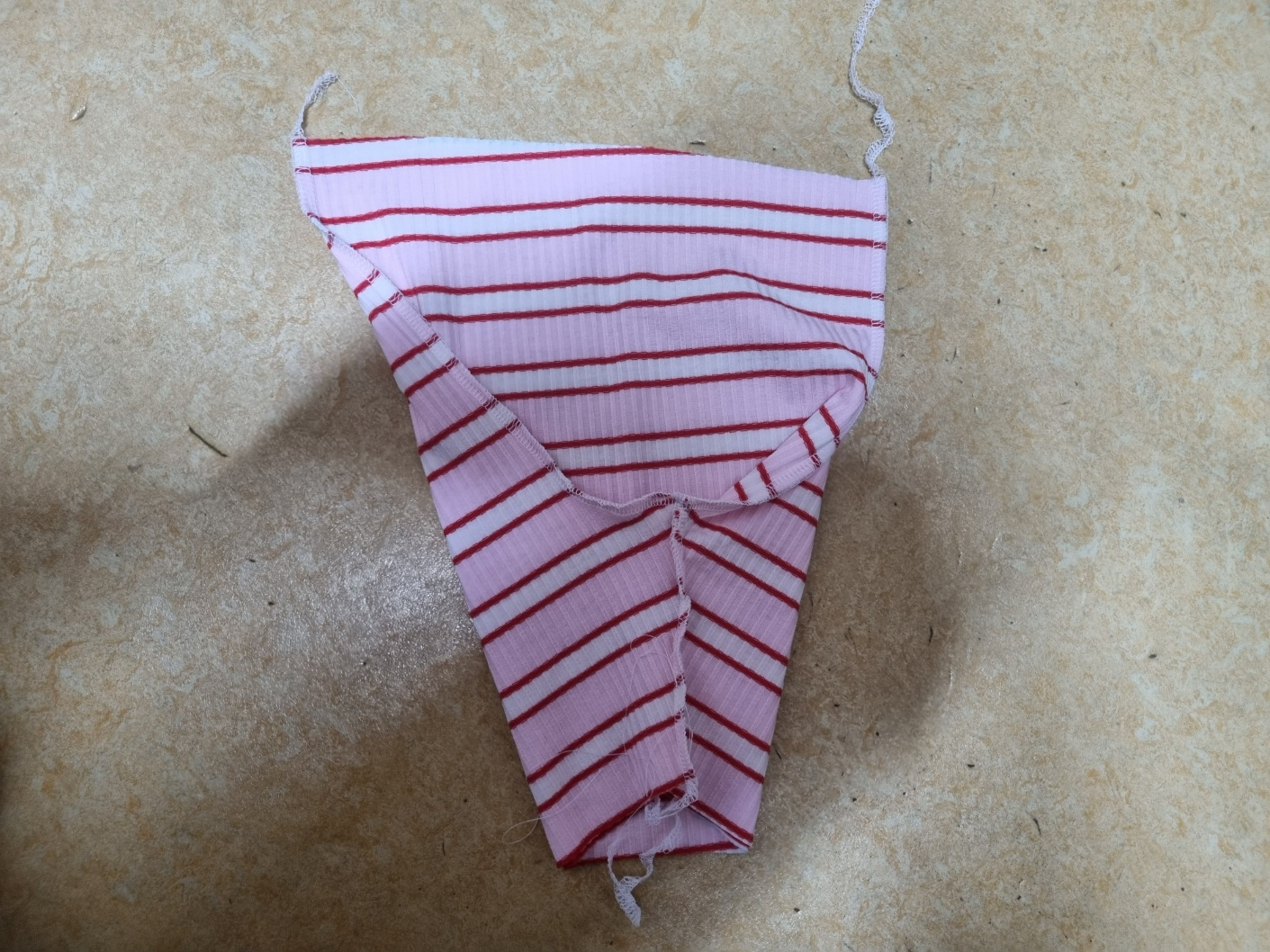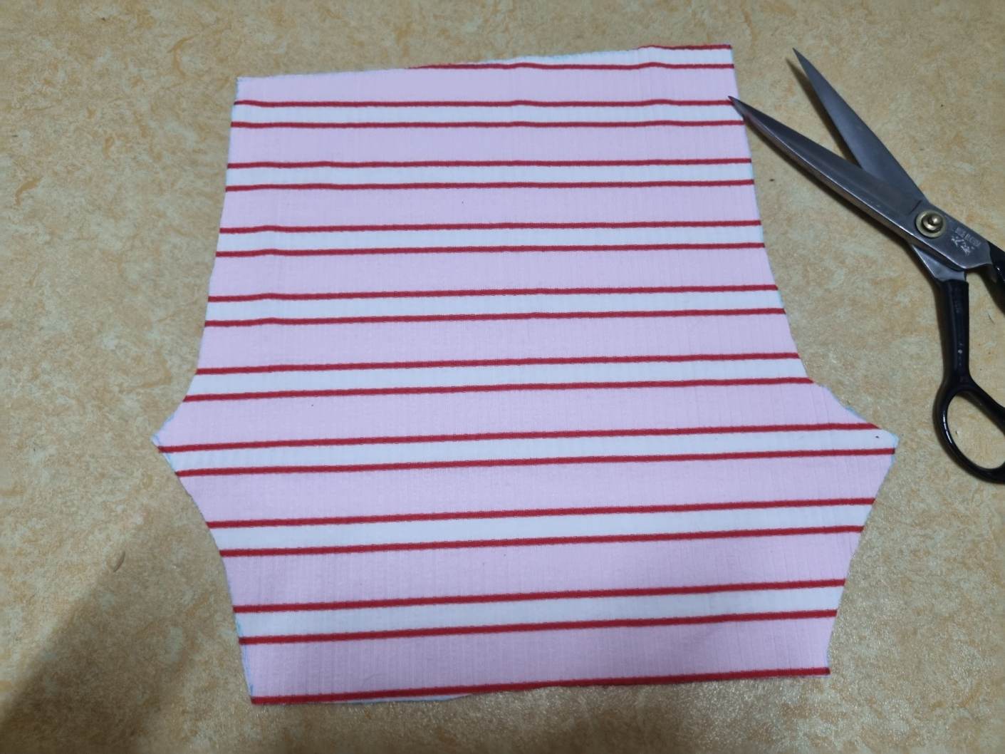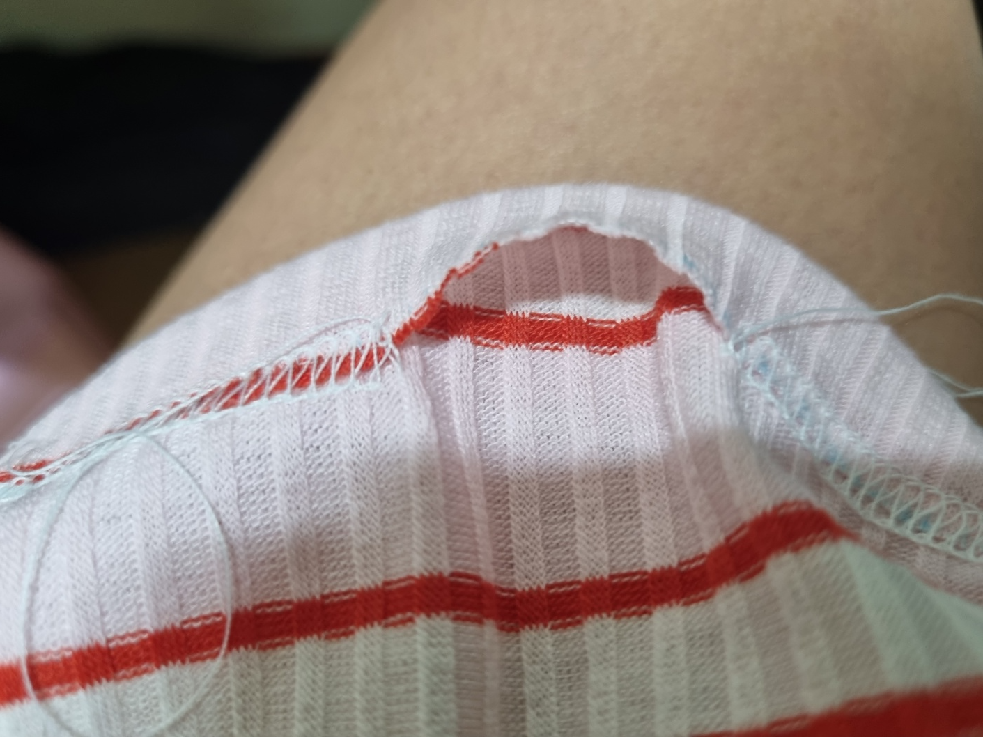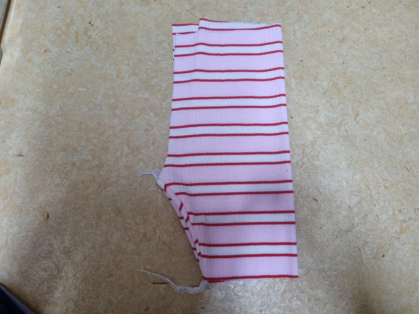 조금 확대해서 사진을 찍었어요. 줄무늬도 잘 맞췄어요. 사질 이런 가로줄은 줄무늬 못 맞추면 정신없어 보여요. 그래서 줄무늬도 맞췄는데 생각보다 너무 완벽해요. 집에서 천천히 만들어도 30분이면 충분히 만들 수 있어요. 사용하는 원단도 아주 적어요. 한마면 2벌 만들 수 있어요. 고무줄도 고작 40cm 정도 사용했어요. 그런데 시중에서 판매하는 아동 레깅스는 왜 이리 비싼지 이해할 수가 없어요.