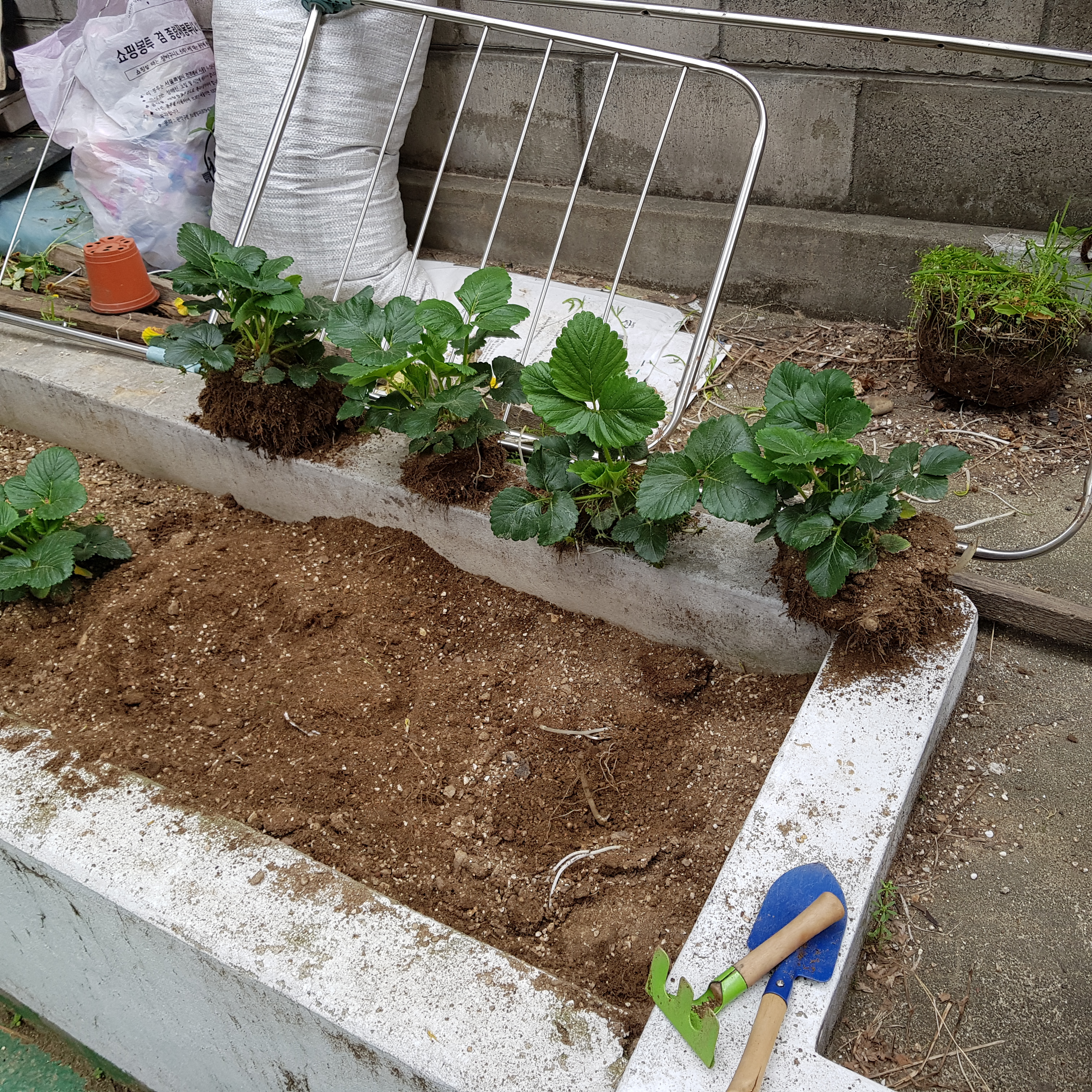 아래 사진과 같이 땅을 파고 7, 8번 딸기를 넣어서 흙으로 살살 덮었다.