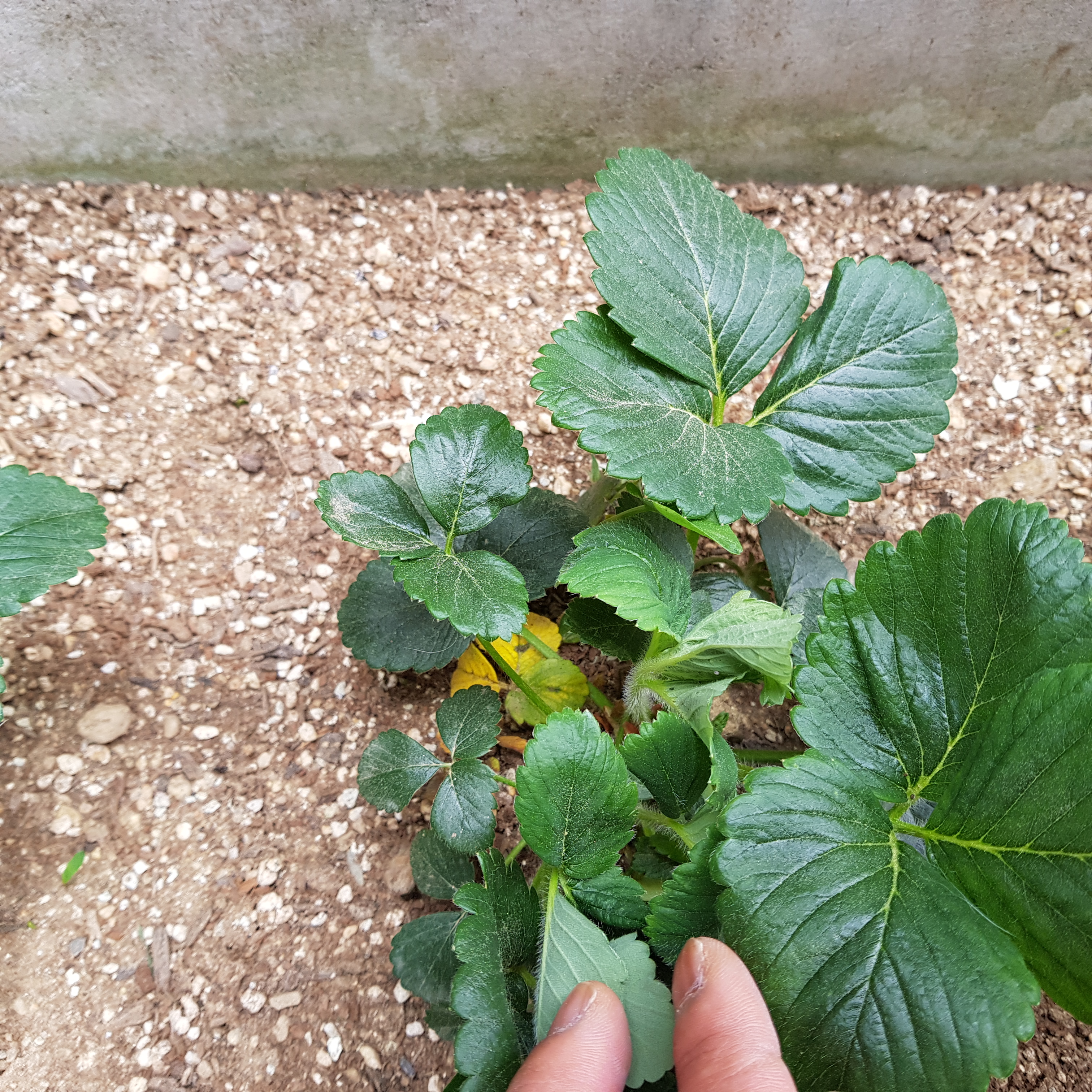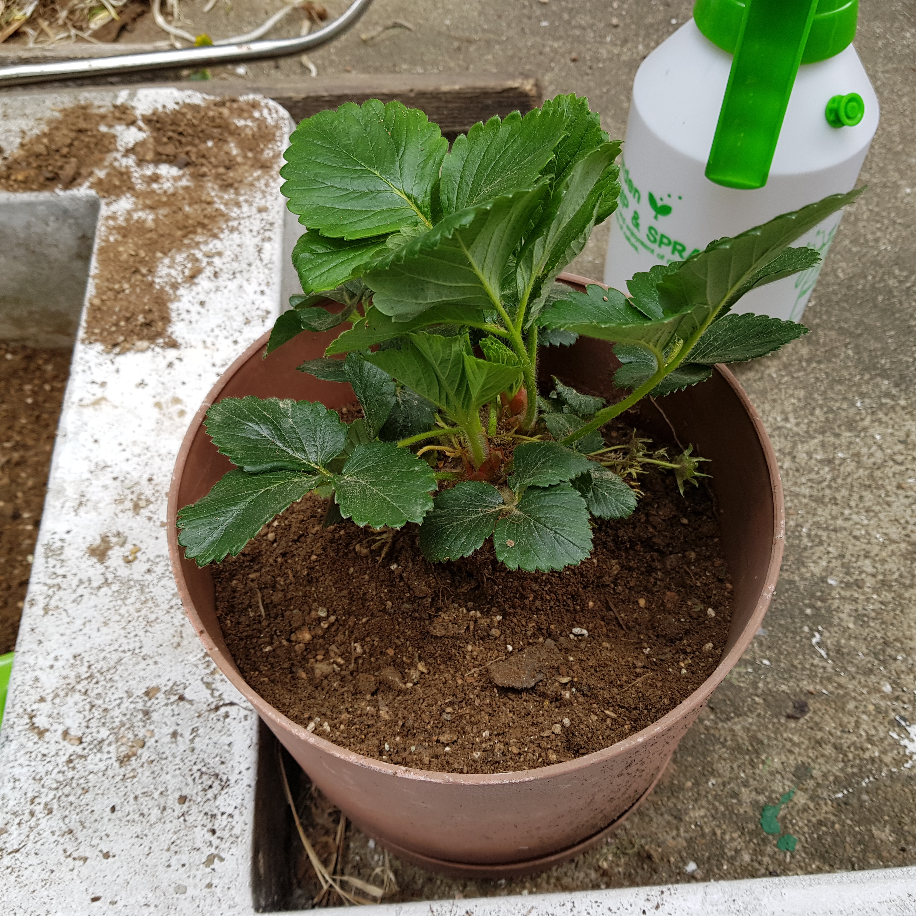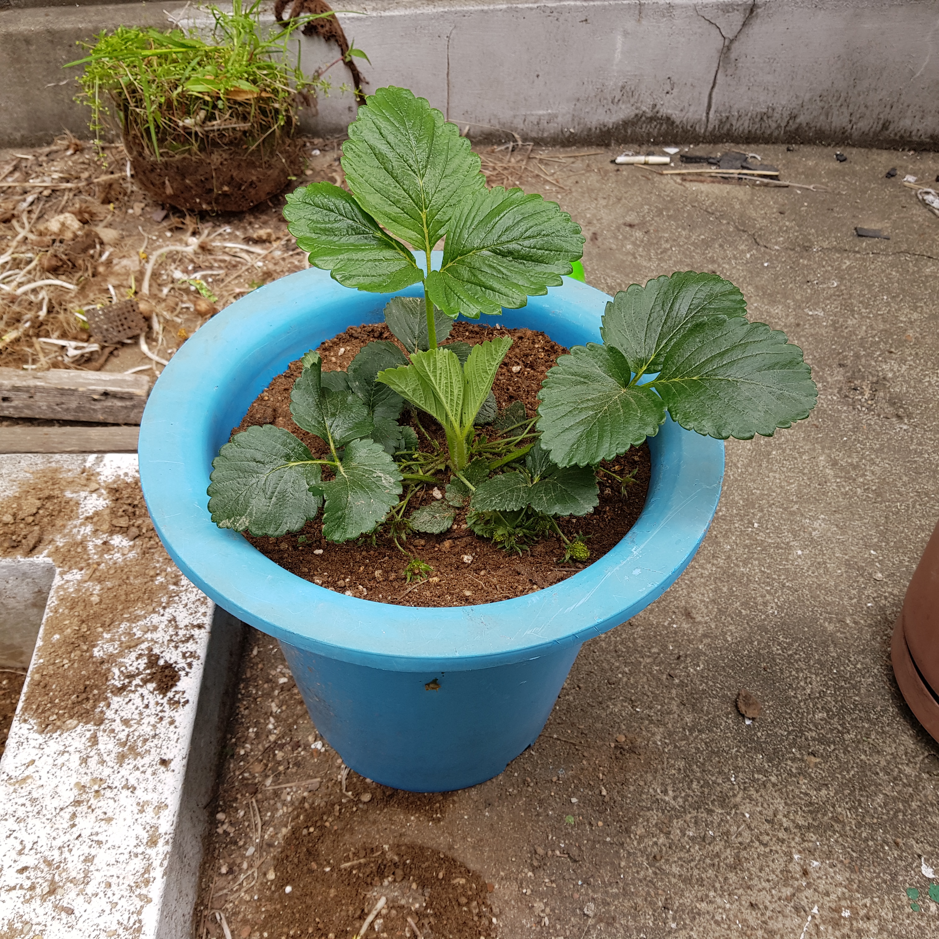 위의 사진으로 보면 크게 문제가 없어 보인다. 많이 시들어 보이지도 않고 얼핏 보면 잘 자라고 있는 거처럼 보이지만 실제로 봤을 땐 시들시들한 게 더 심각하다. 그래서 텃밭의 노지 딸기 모종 2그루를 화분으로 옮기기로 결정했다.
