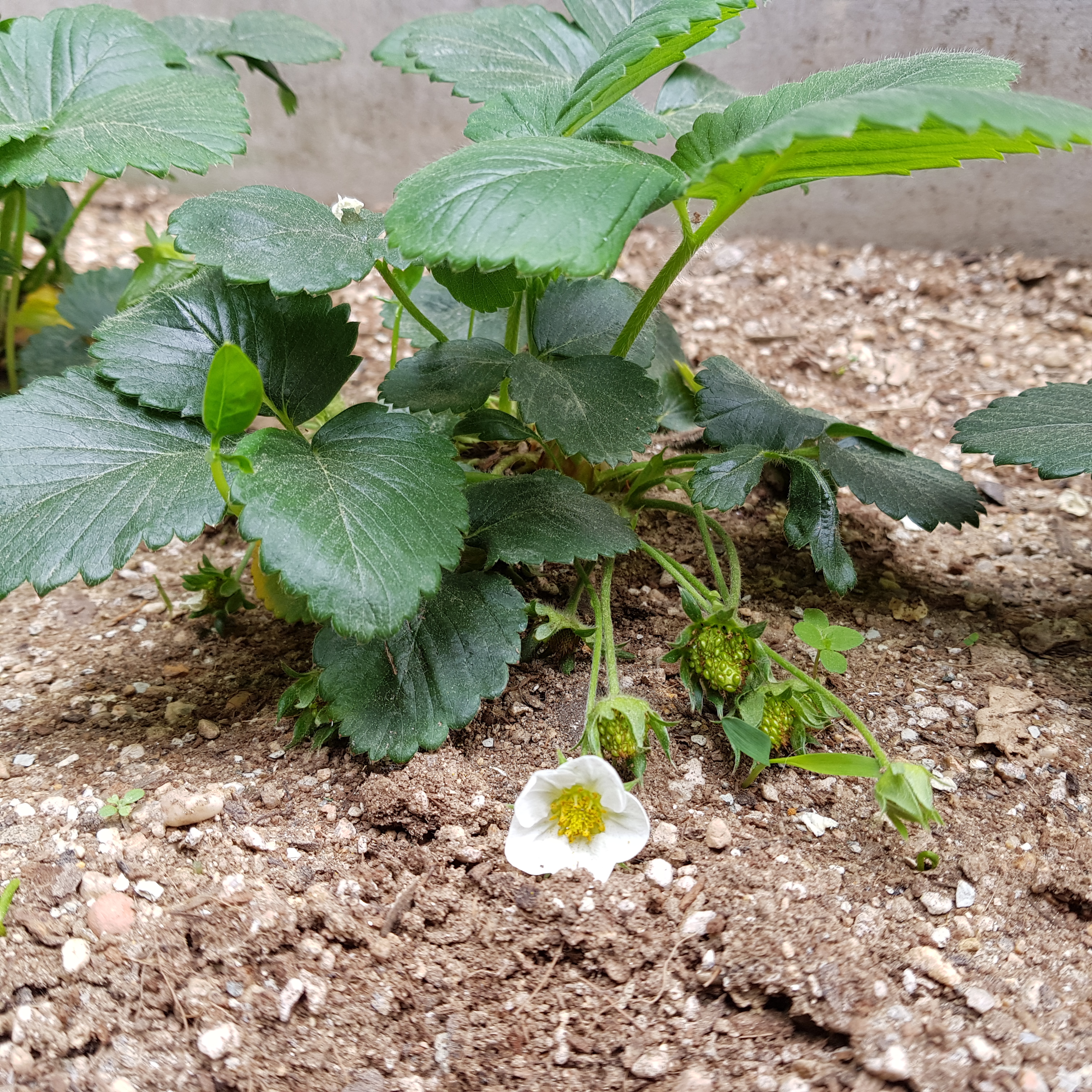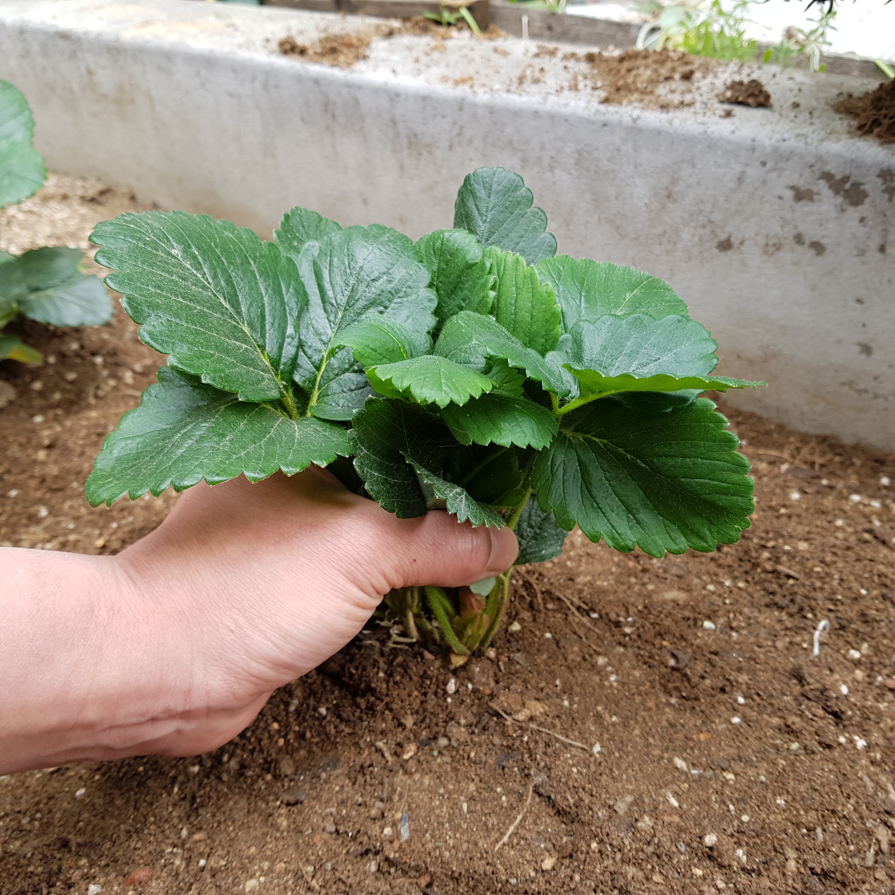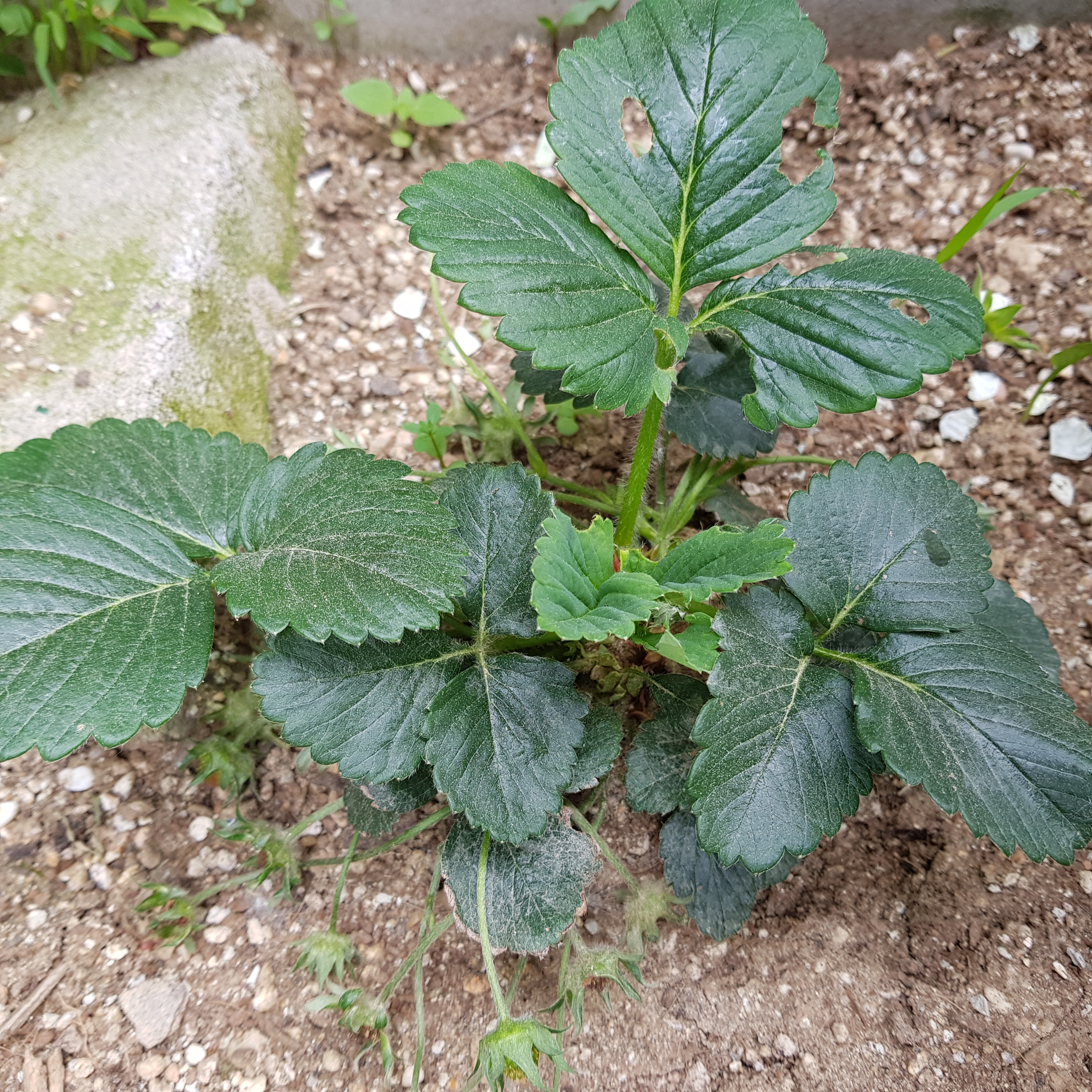 위의 사진으로 보면 크게 문제가 없어 보인다. 많이 시들어 보이지도 않고 얼핏 보면 잘 자라고 있는 거처럼 보이지만 실제로 봤을 땐 시들시들한 게 더 심각하다. 그래서 텃밭의 노지 딸기 모종 2그루를 화분으로 옮기기로 결정했다.