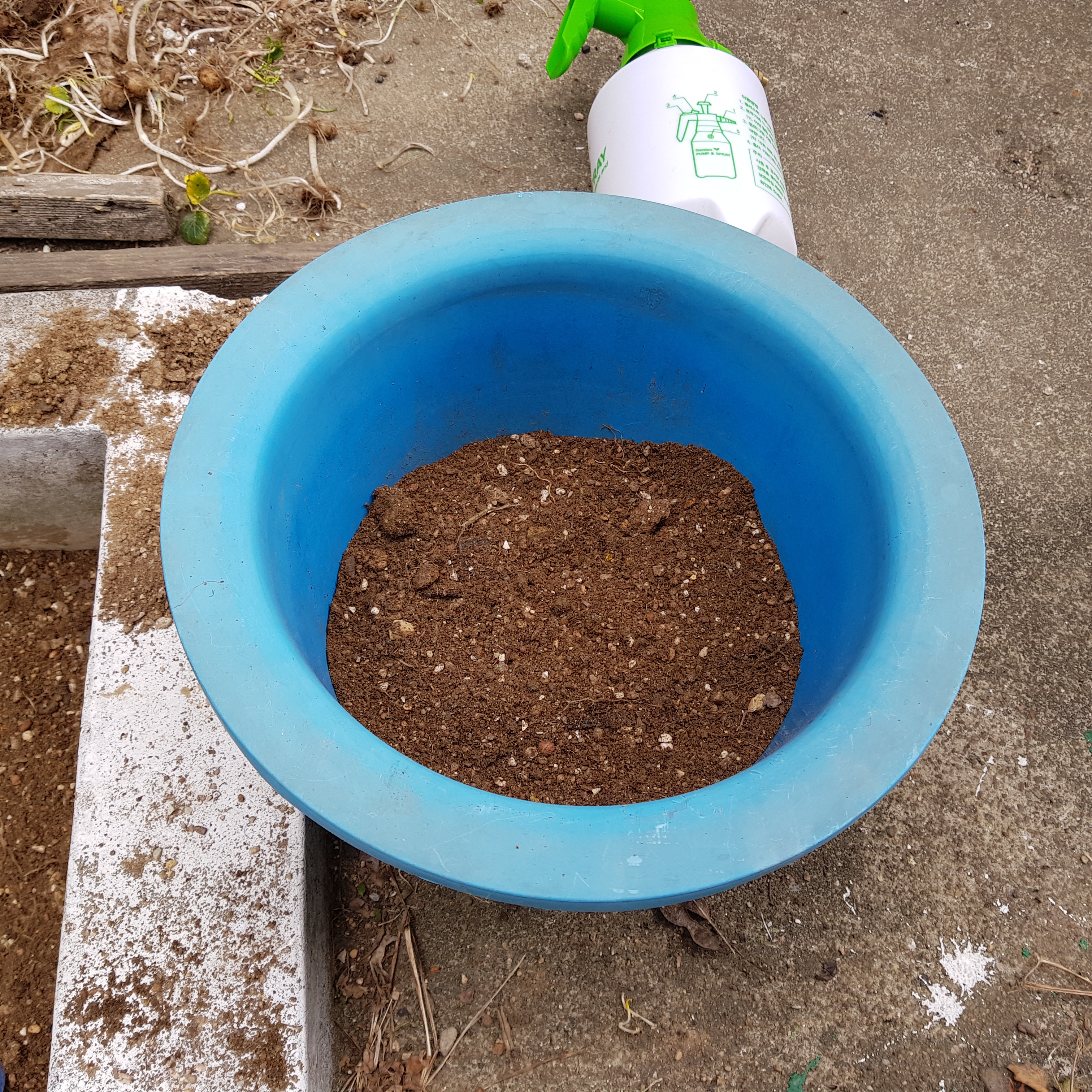 잡초들과 누런 잎, 죽은 꽃턱을 제거하고 딸기 모종 화분으로 옮겨 심고 물을 흠뻑 줬다. 약 4L를 준거 같다. 요즘 한낮의 기온이 너무 높아서 물을 많이 줘야 될 것 같다.