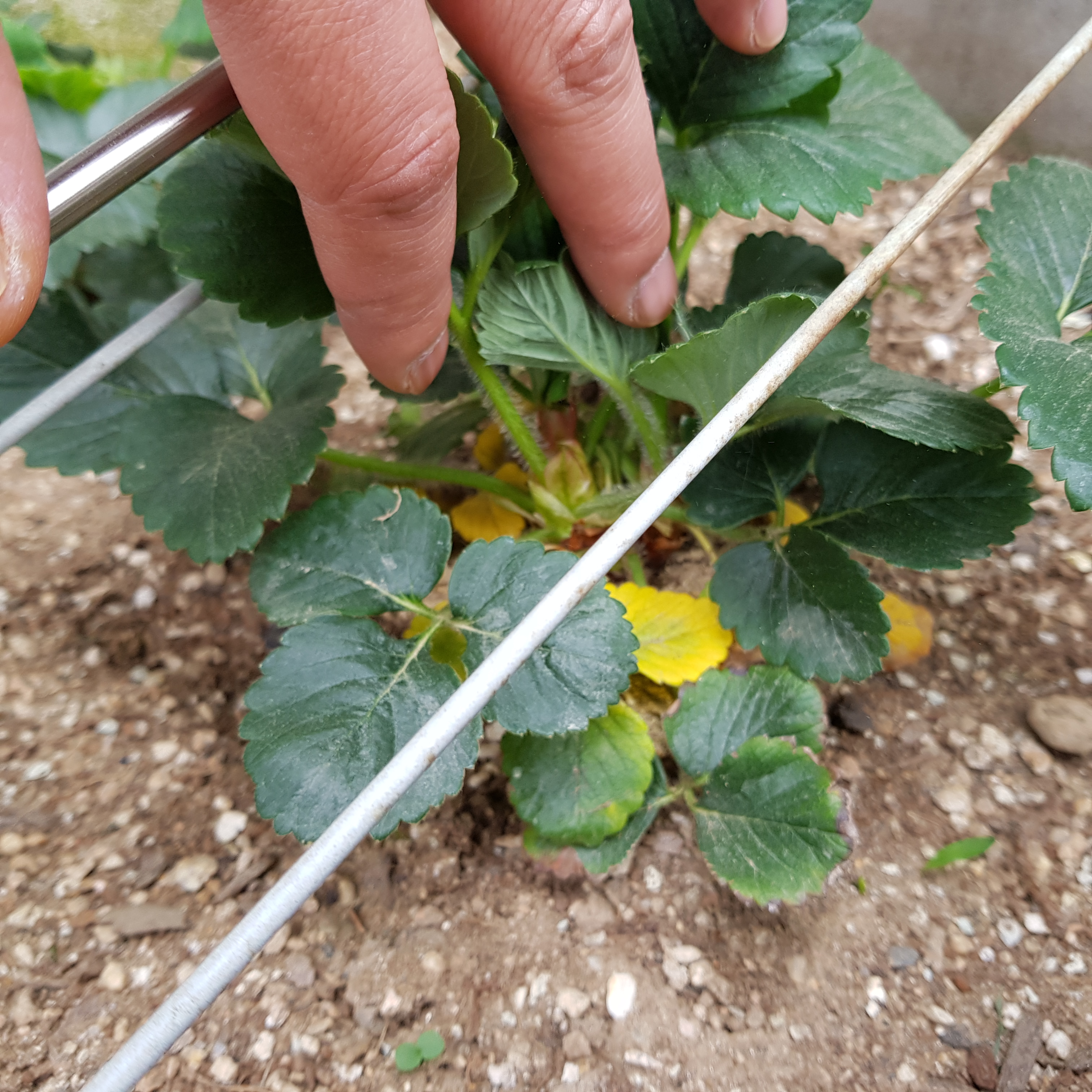 3번 딸기도 2번 딸기와 마찬가지로 누런 잎이 많았다. 3번 딸기의 누런 잎들도 모두 제거해 줬다.