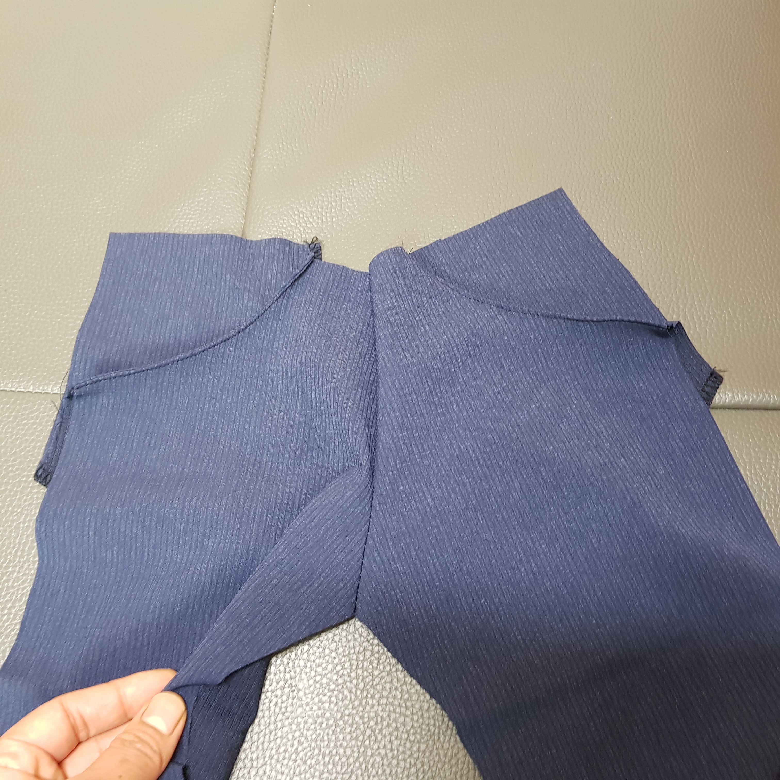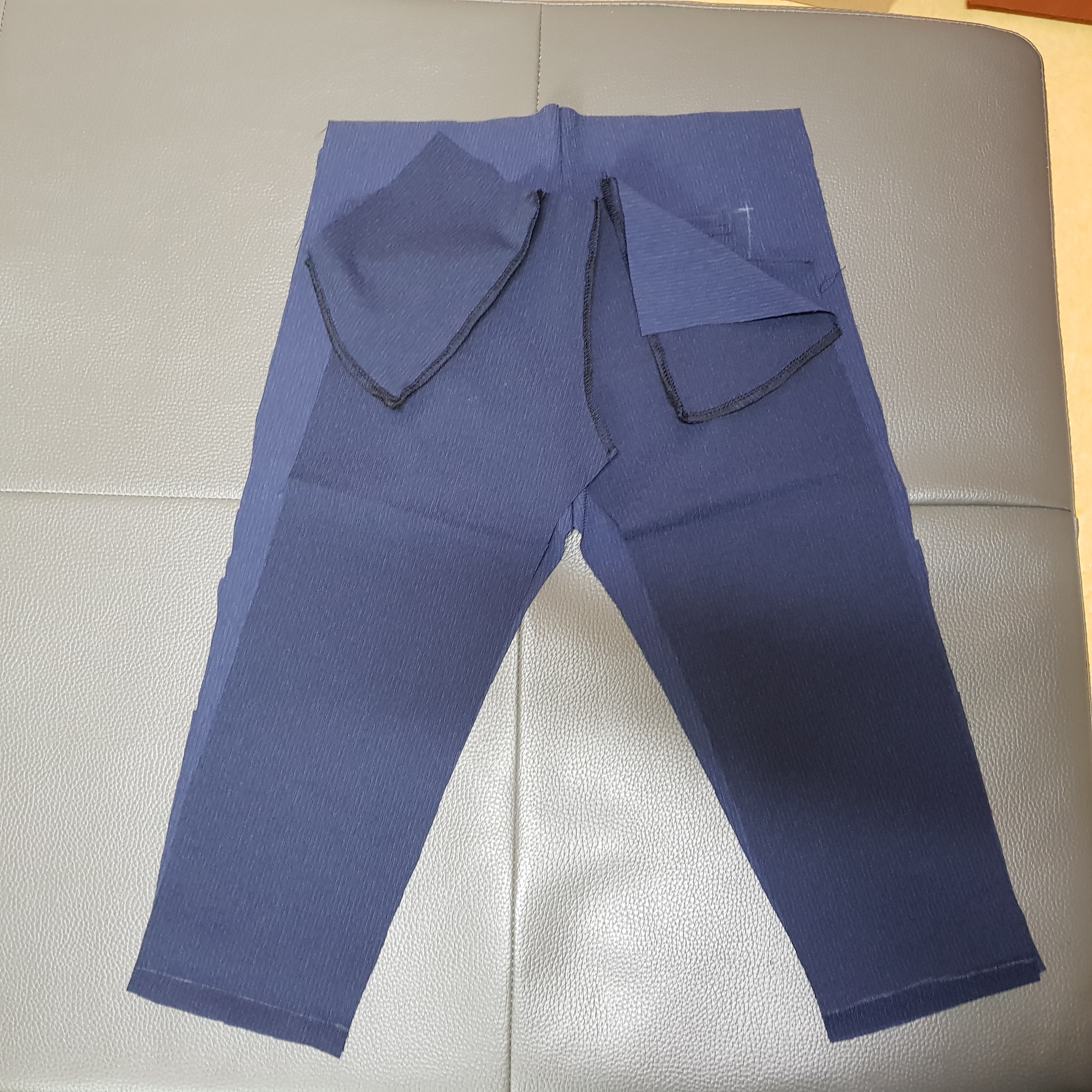밑 아래를 재봉하기 전에 팬츠의 겉면끼리 맞대 보면 길이가 안 맞을 거 같지만 신기하게도 잘 맞는다. 패턴을 전적으로 믿어야 한다.