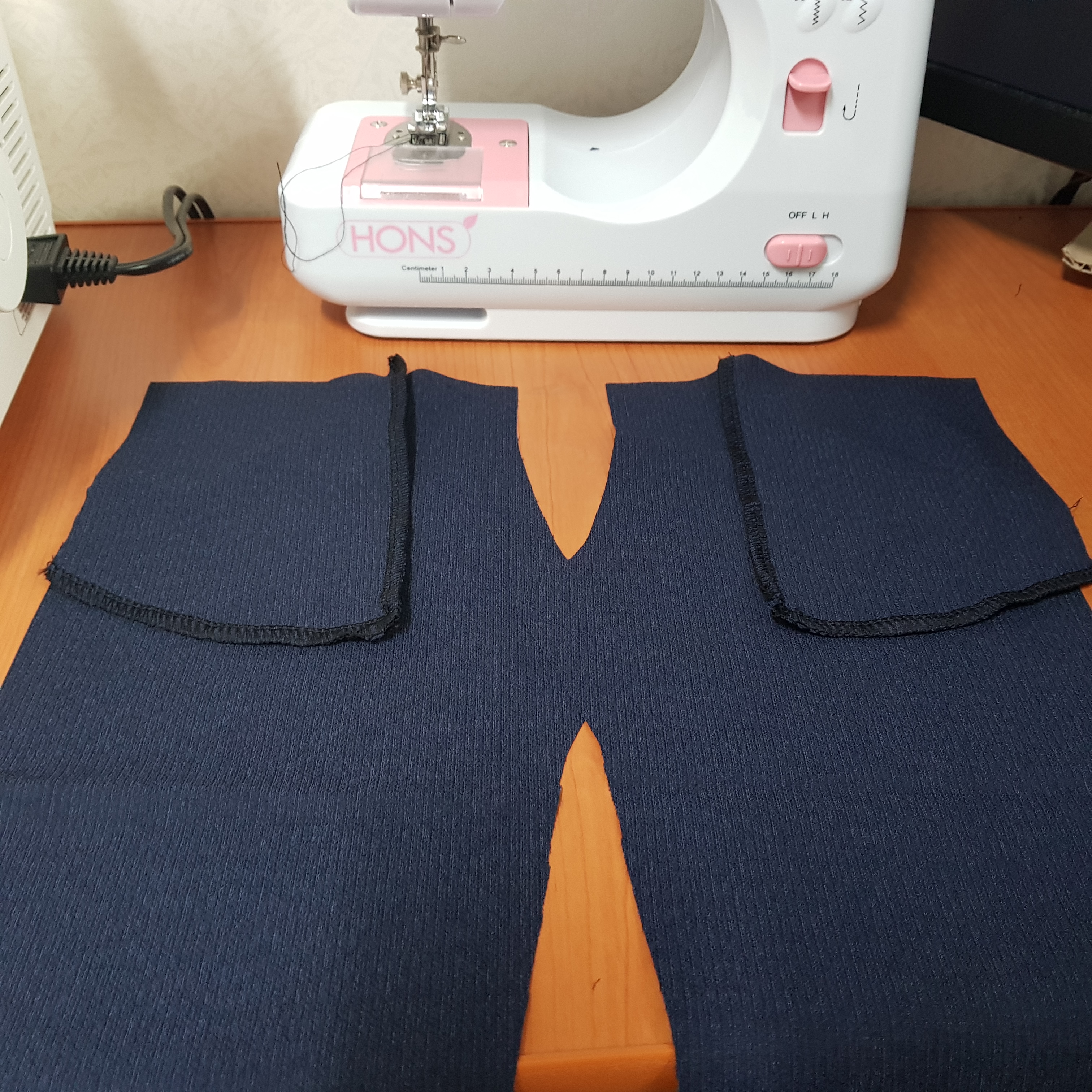 옆선을 재봉한다. 옆선도 재봉하기 전에는 길이가 맞지 않을 거 같지만 재봉하면 대충 길이가 잘 맞는다.