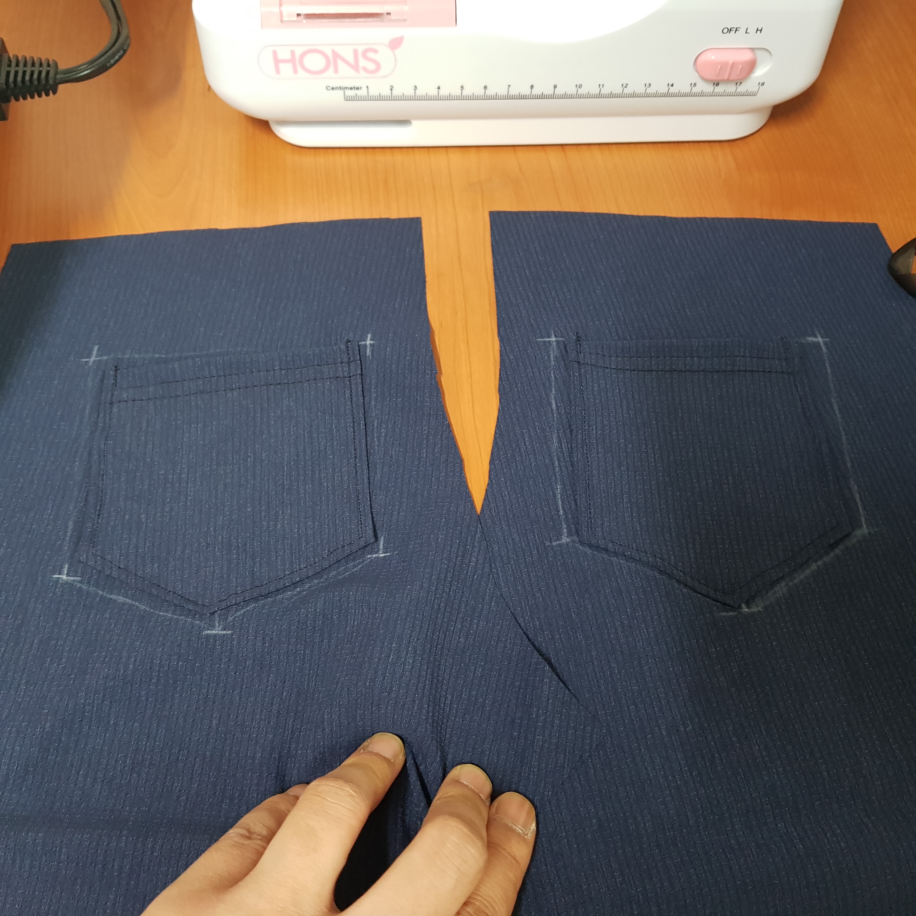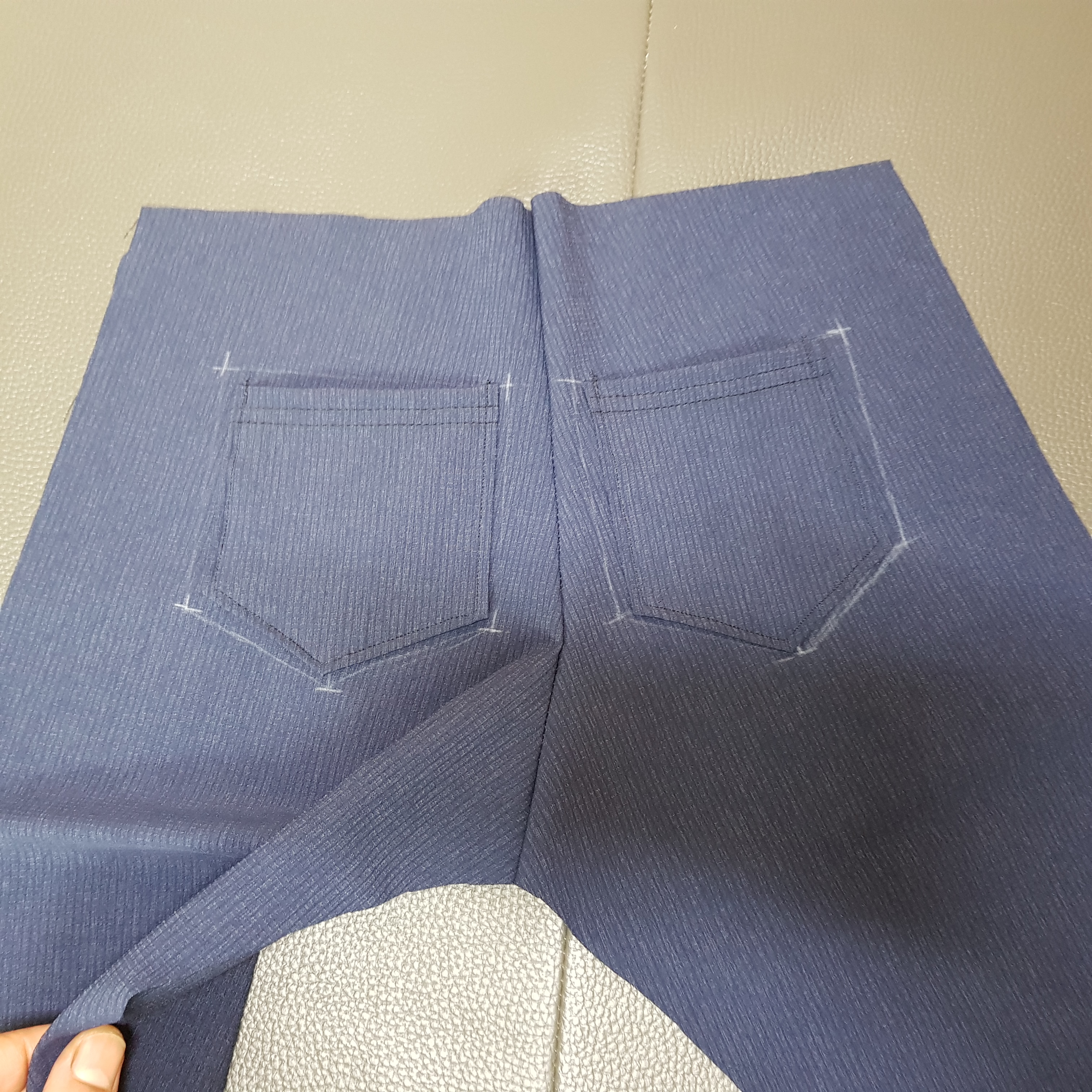 주머니 다는 시간이 너무 오래 걸린다. 뒷주머니 달 때 원단을 안으로 접어서 시침핀으로 고정하는 작업이 너무 오래 걸린다. 뒷주머니 정도는 안 달아도 되지만 그래도 뒷주머니가 있어야 옷이 예뻐 보이는 거 같다.