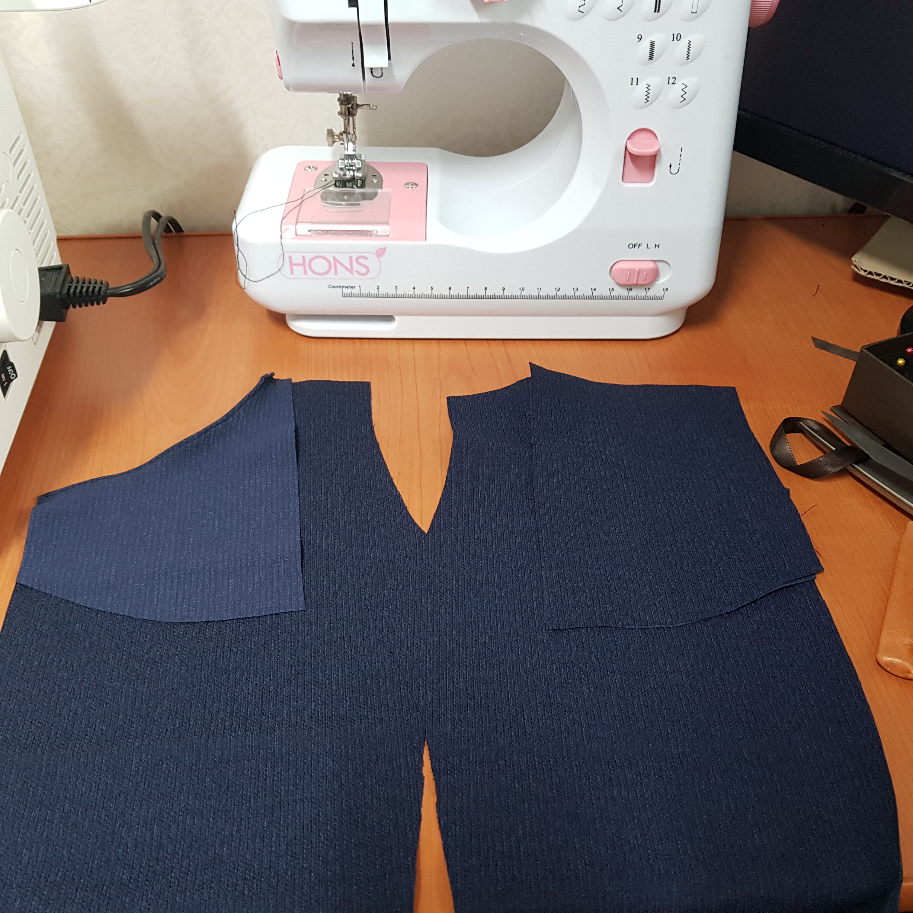 옆선을 재봉한다. 옆선도 재봉하기 전에는 길이가 맞지 않을 거 같지만 재봉하면 대충 길이가 잘 맞는다.