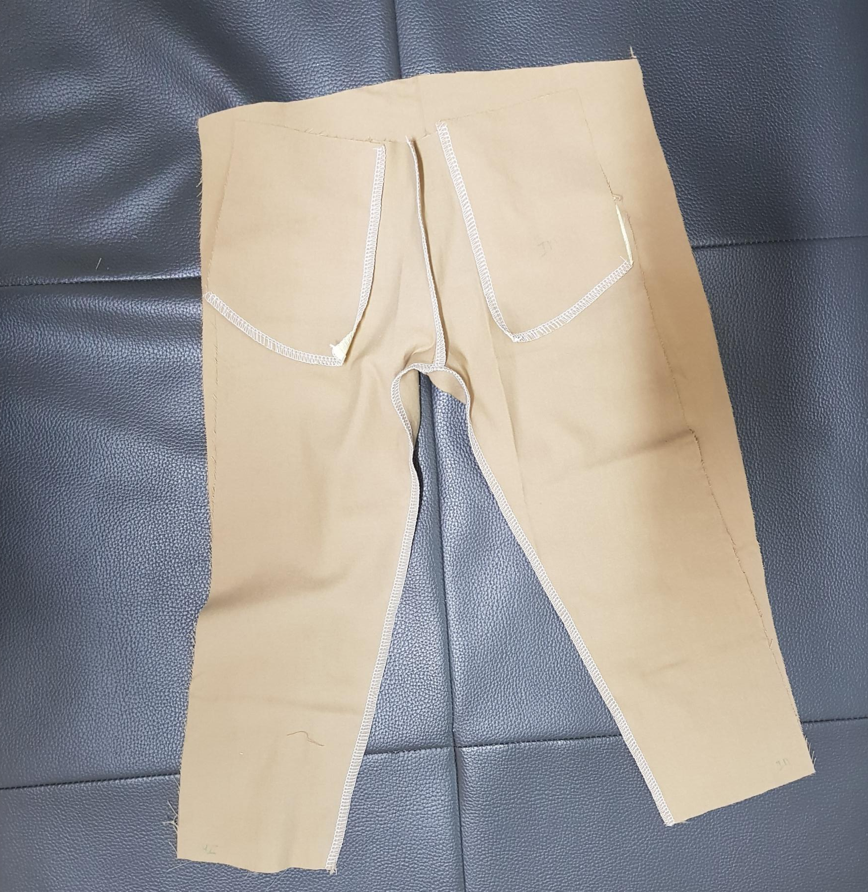 아래 사진은 바지 앞판에서 주머니의 입구를 따라 재봉하였다.