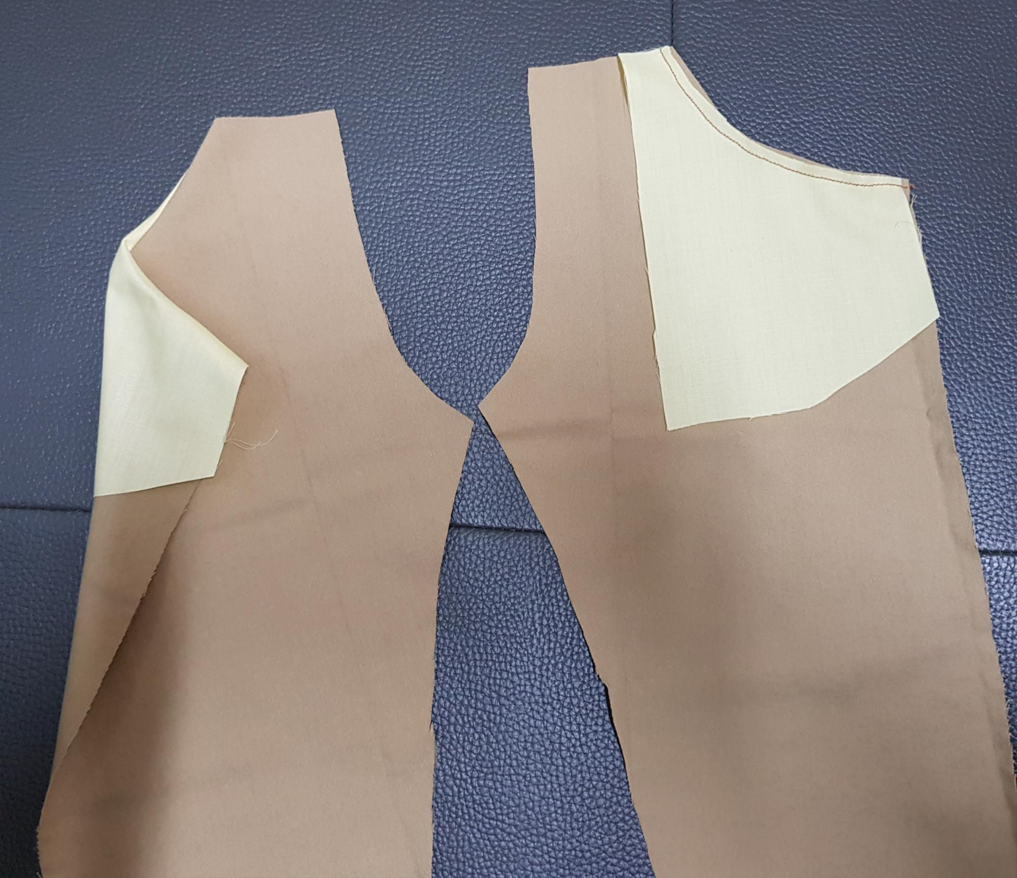 아래 사진은 안주머니를 뒤집어서 주머니의 입구를 한번 더 재봉한 사진이다.