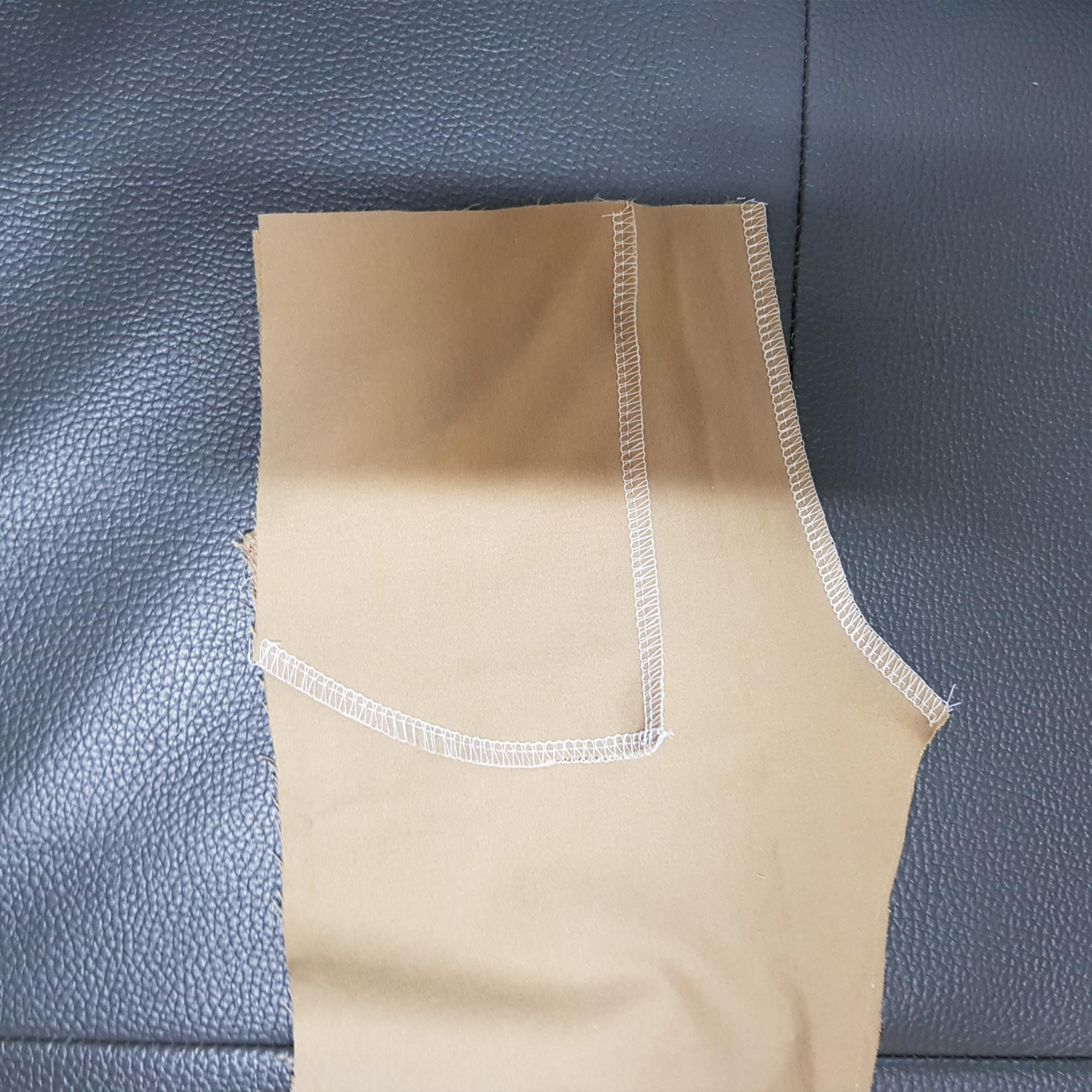 아래 사진은 바지 앞판에서 주머니의 입구를 따라 재봉하였다.