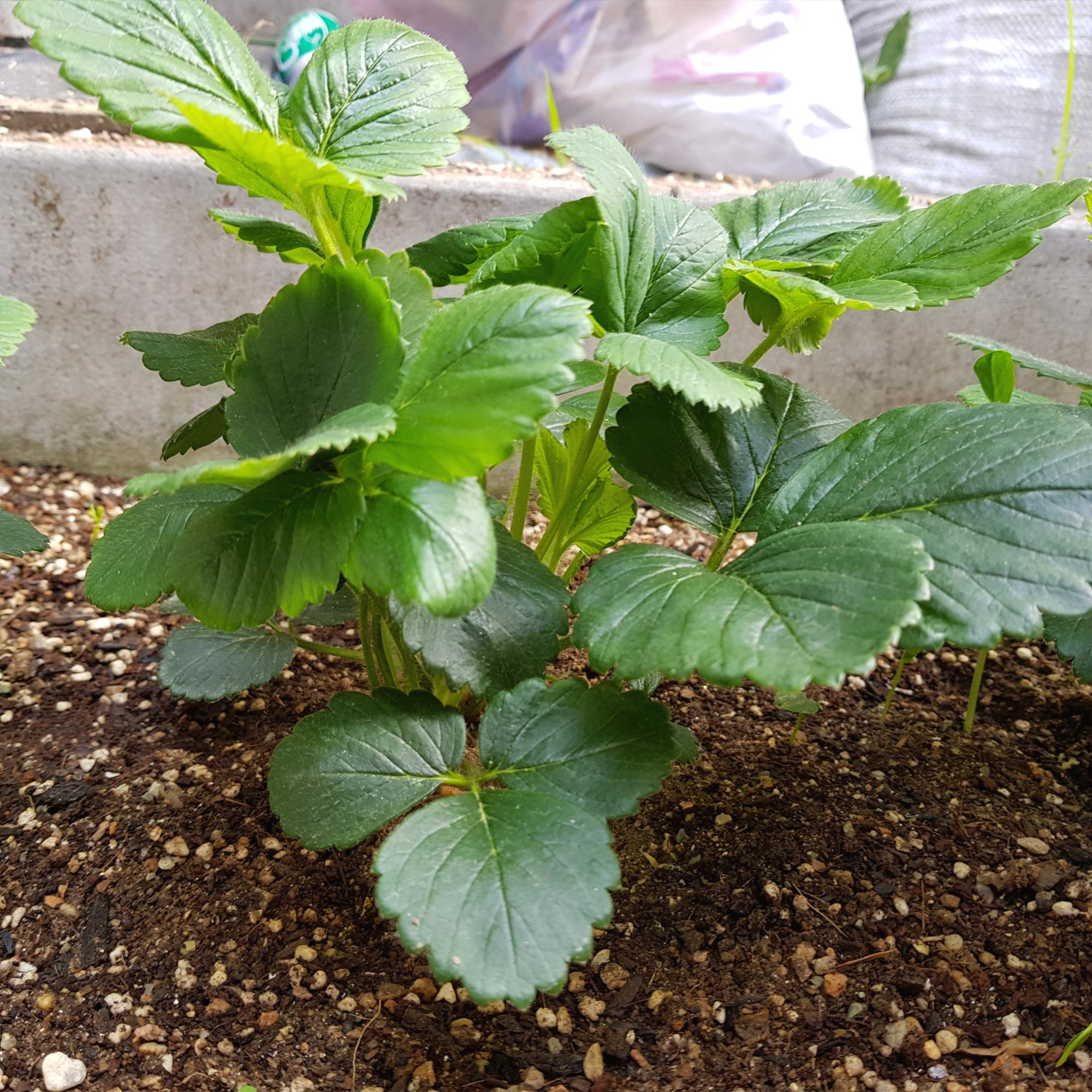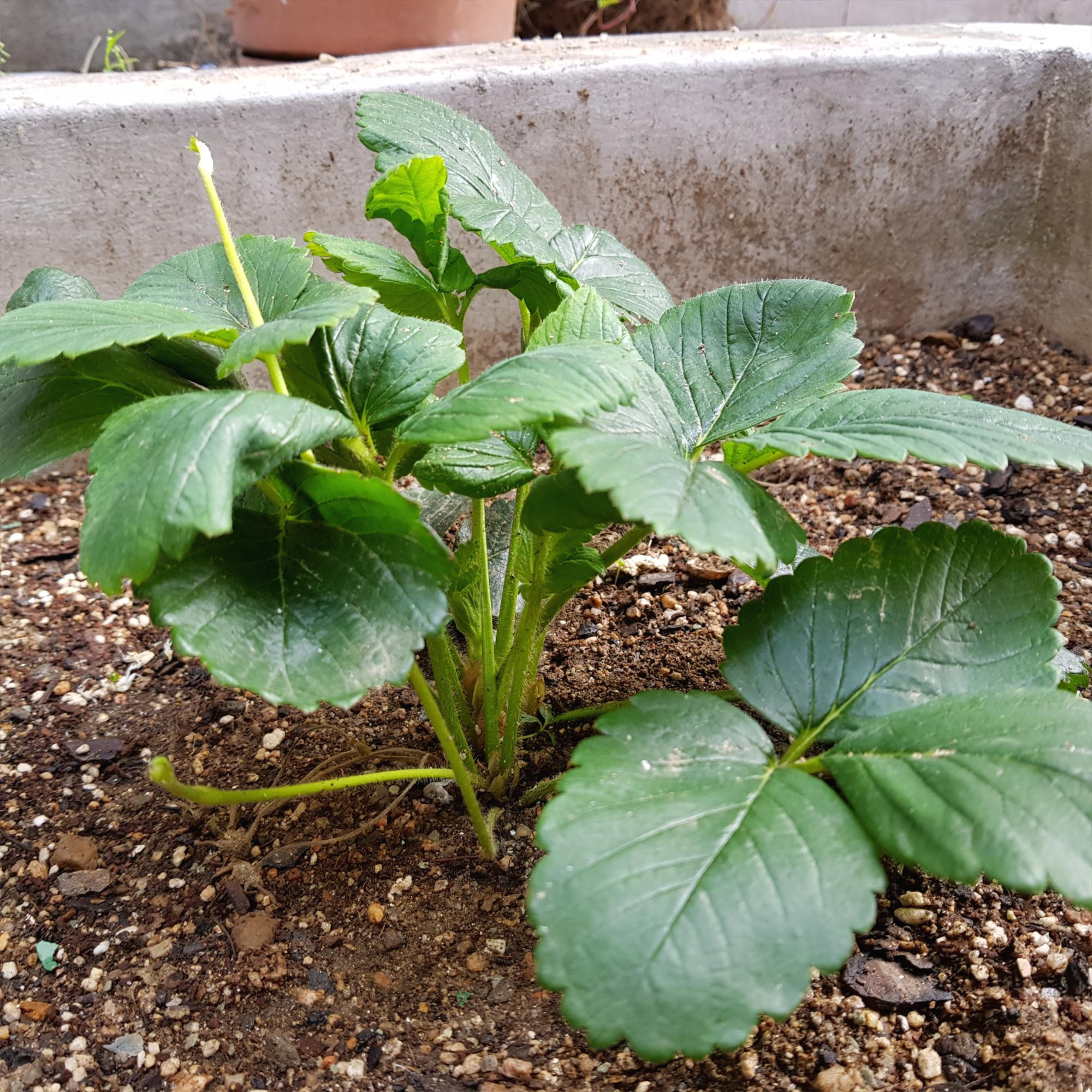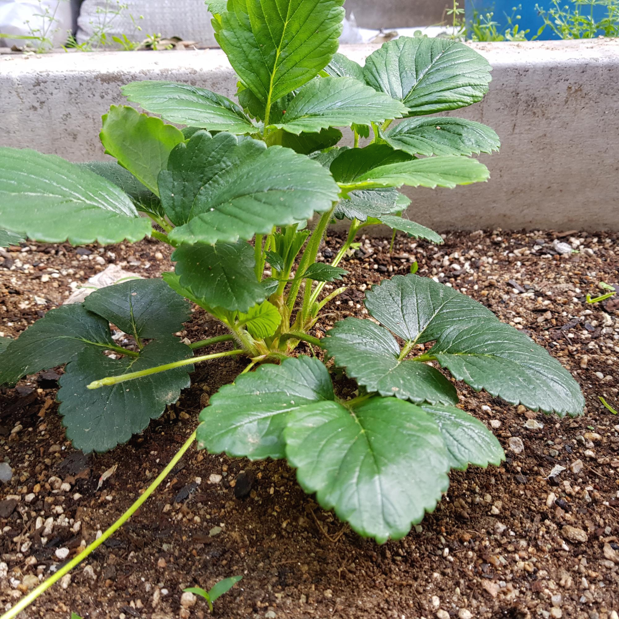 아래 사진은 6번 딸기다. 6번 딸기 역시 딸기가 없다. 지난주에 꽃받침이 모두 죽었고 잎만 무럭무럭 자라나고 있다. 6번 딸기에서 줄기가 길게 뻗어 나오고 있는데 자식묘를 내리기 위해 런너가 나오는 거 같다.