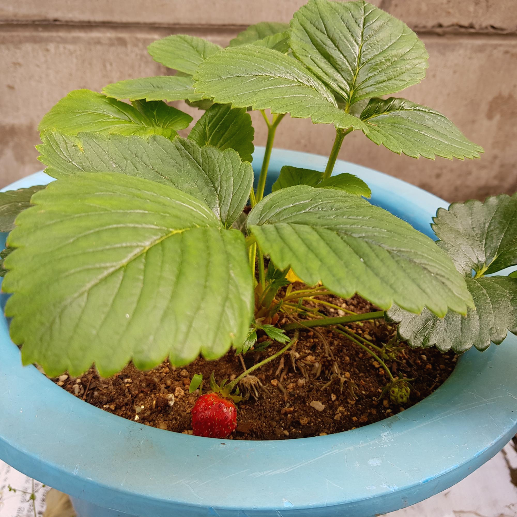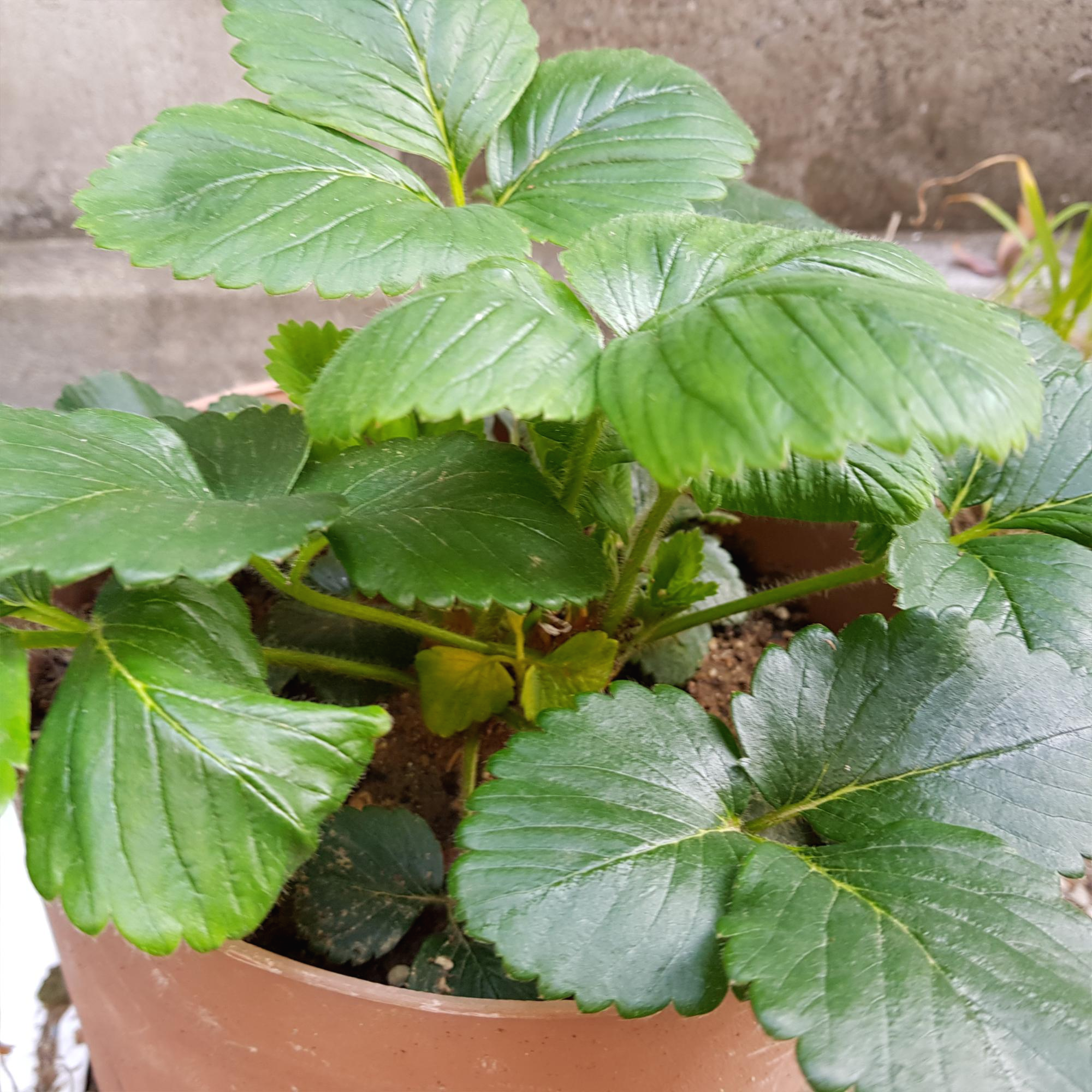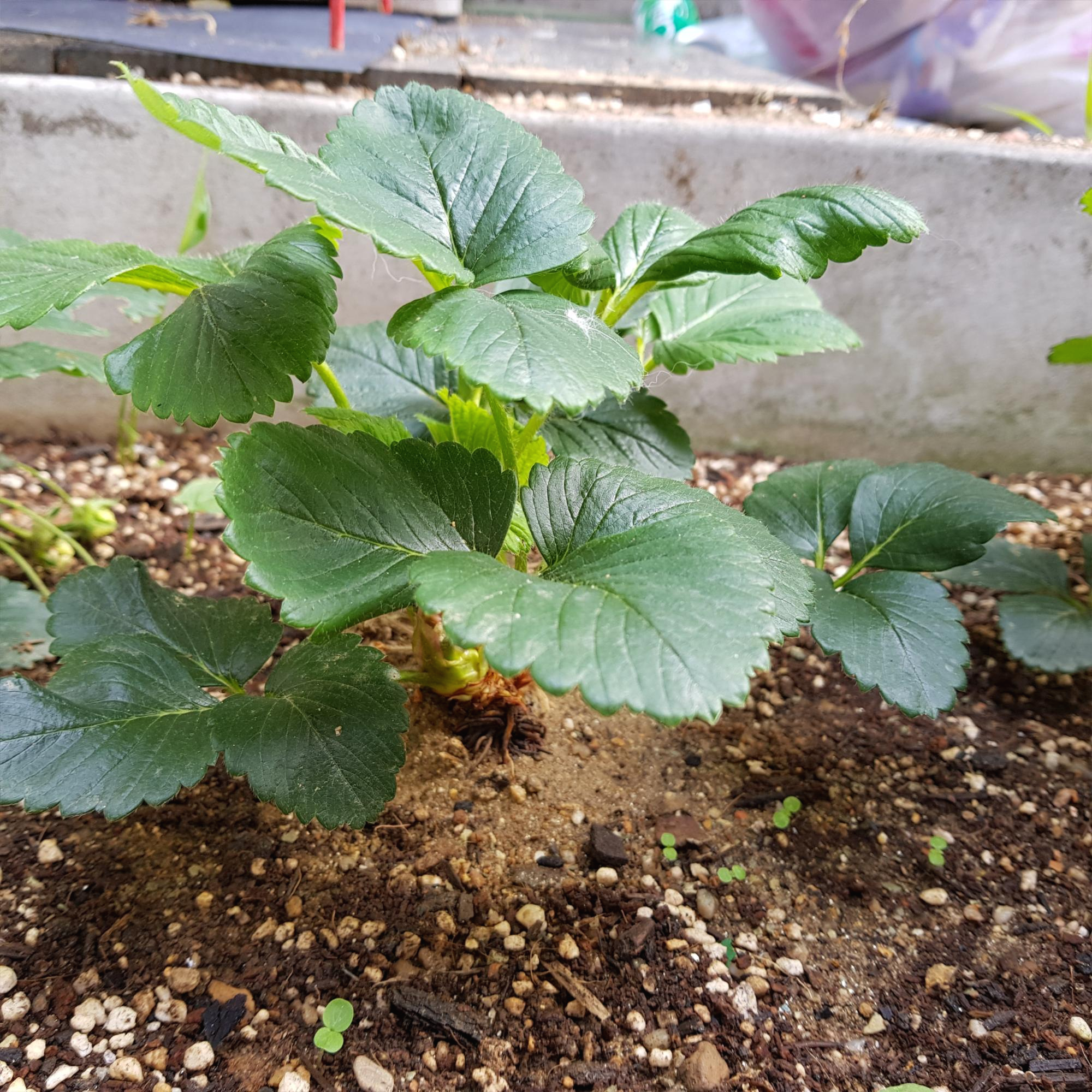 아래 사진은 6번 딸기다. 6번 딸기 역시 딸기가 없다. 지난주에 꽃받침이 모두 죽었고 잎만 무럭무럭 자라나고 있다. 6번 딸기에서 줄기가 길게 뻗어 나오고 있는데 자식묘를 내리기 위해 런너가 나오는 거 같다.