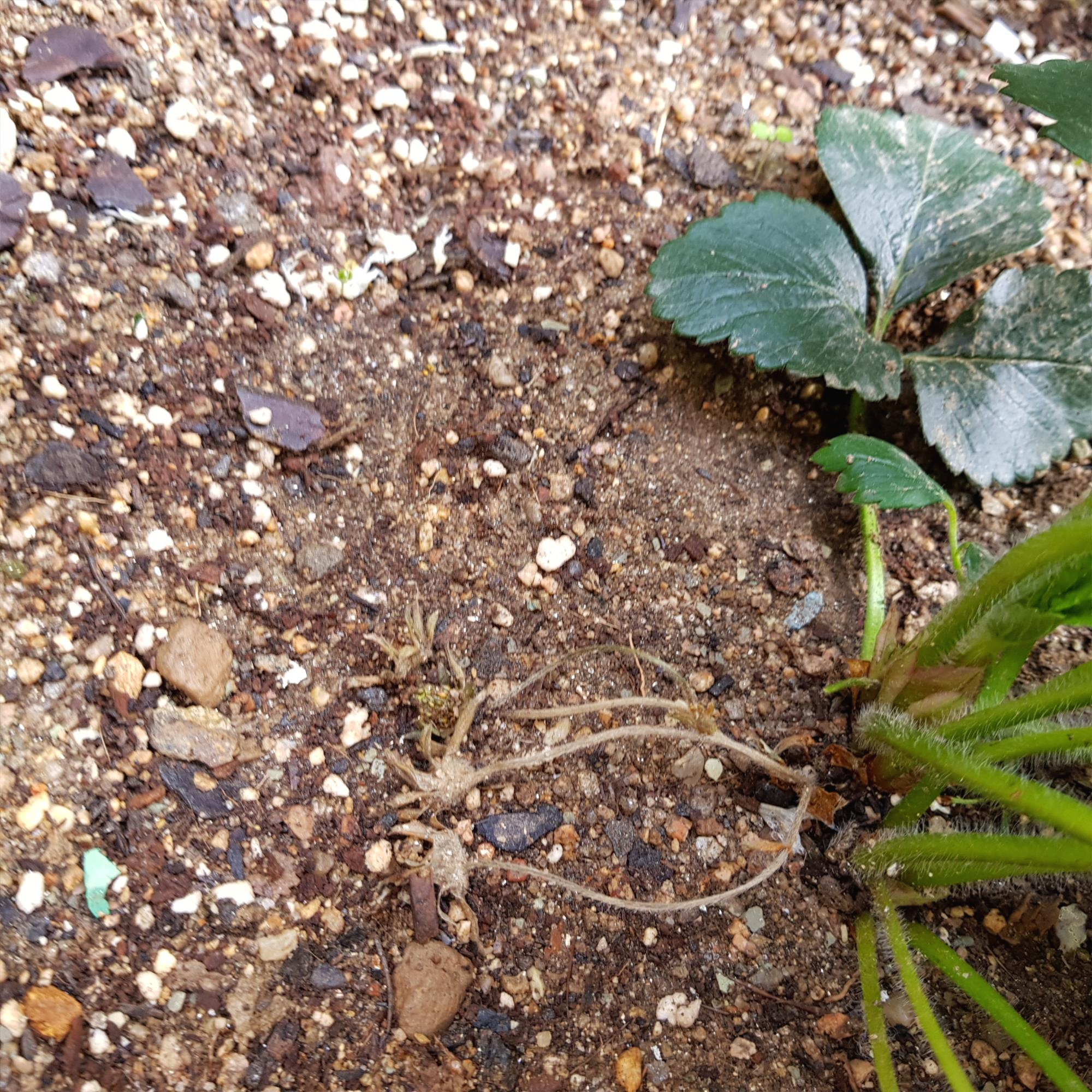 아래 사진은 8번 딸기다. 8번 딸기는 그나마 몇 개의 꽃받침이 남아있었는데 이번 주에도 비가 와서 그런지 모두 죽어버렸다. 8번 딸기에서도 런너가 자라고 있는 거 같다.