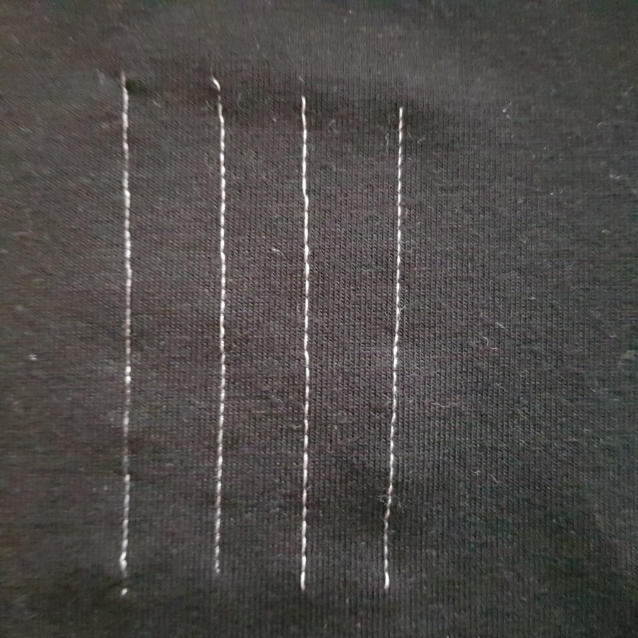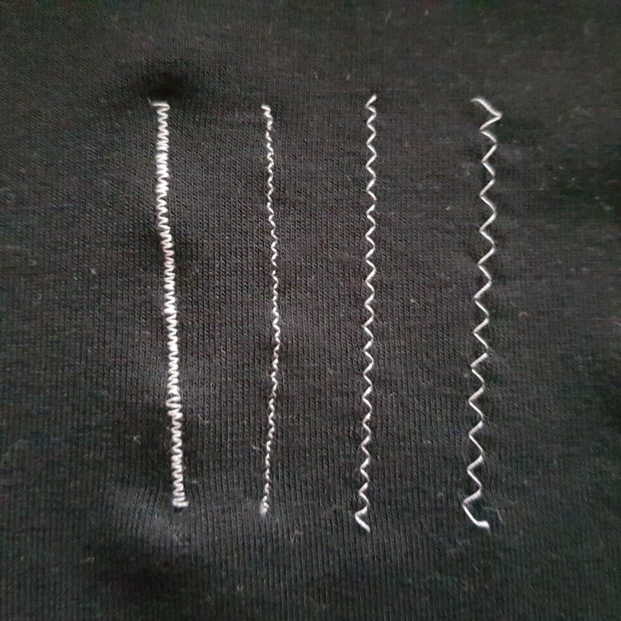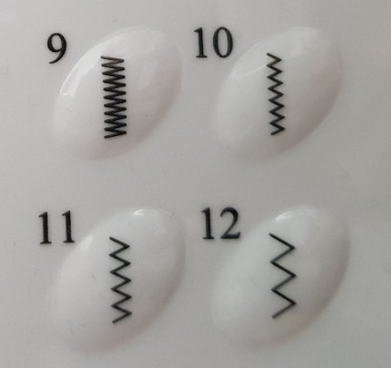 단위를 숫자로 알면 좋으련만 그림을 보고 감을 잡아서 테스트 원단에 박아 봐야 땀이 어느 정도인지 알 수 있다. 보통 원단 두께에 따라서 2번 또는 3번 패턴을 사용하는 것이 가장 무난하고 예쁜 거 같다. 4번은 바늘이 왼쪽으로 살짝 이동해서 박음질되는데 꽤 유용하게 쓰인다. 오버룩 패턴은 12번을 사용하는 것이 가장 빠르고 바늘땀도 예쁘고 빨래를 해도 올이 풀리지 않아 가장 무난하다.
