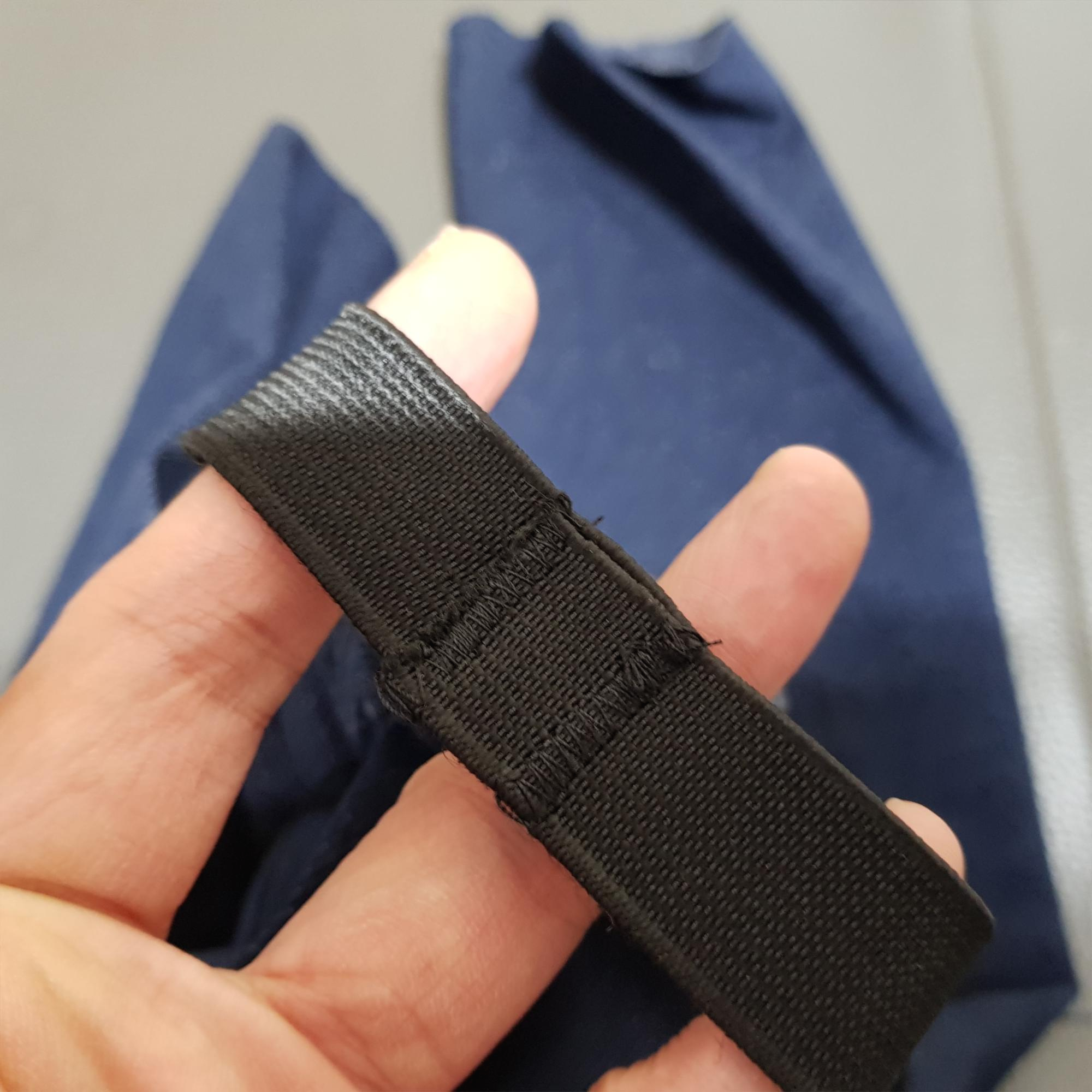 아래 사진은 고무줄을 끼우고 고무줄을 원형으로 만들기 위해 고무줄 끝을 재봉한 사진이다.
